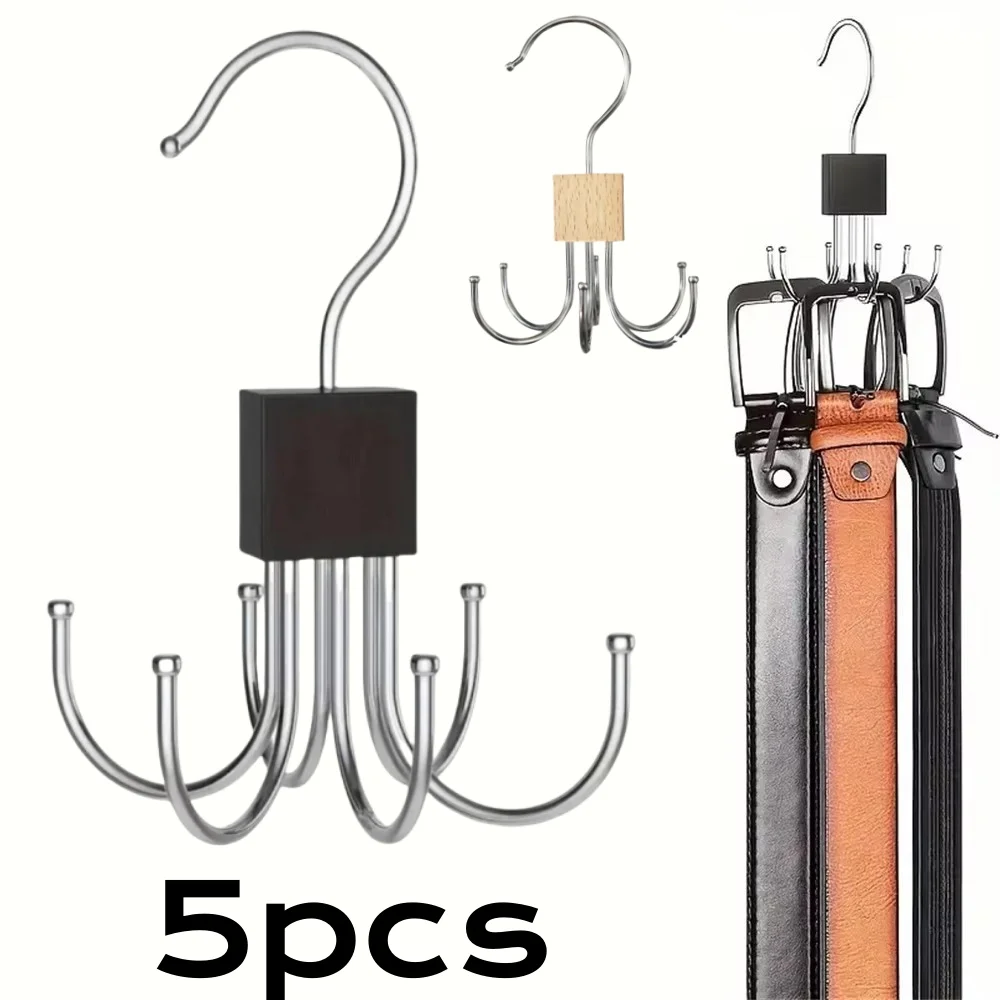 1/5pcs 360° Rotating Storage Hanger Hook Multi-Claw Bag Metal Belts Rack Wooden Organizer For Bras Ties Household Closet Acces
