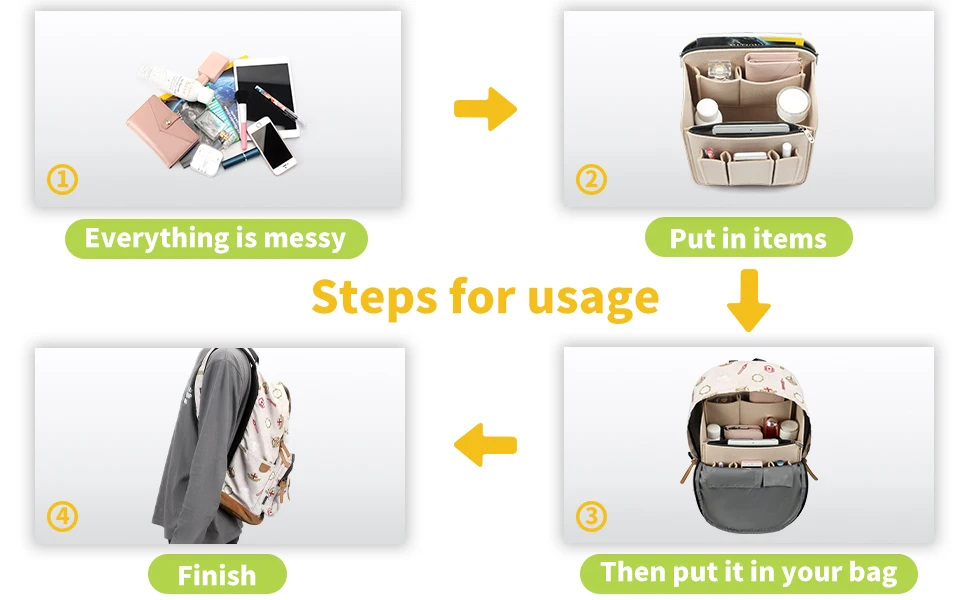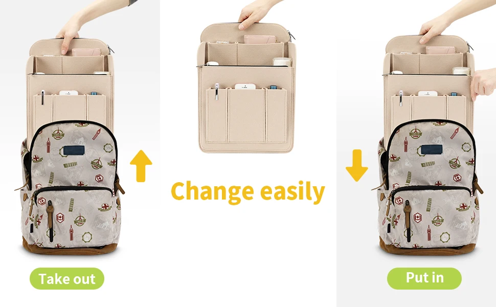 Convenient and Effective: You can put it into your handbag so that immediately divide your backpack into multiple areas, and then put your items in different pockets. It keeps everything neat and tidy.