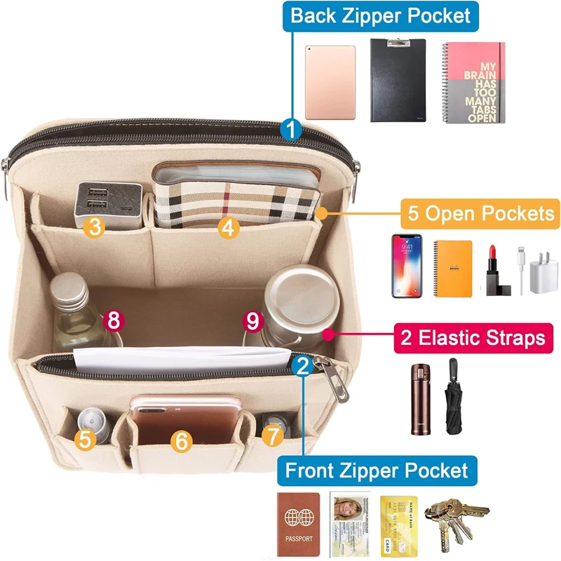 Change Your Purse in a Second: You can easily and quickly transfer the organizer insert from one handbag to another without rearranging the stuff of your purse. A must-have for your daily life, a great companion for your bags wherever you are, travel, work, vacation.