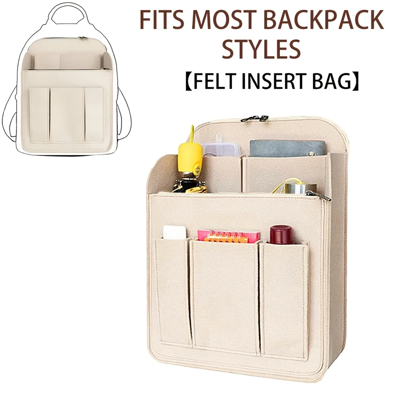 1 PCS Felt Backpack Organizer Insert For Travel Rucksack Daypack Large Capacity Zipper Divider Foldable Bag Liner For Men Women