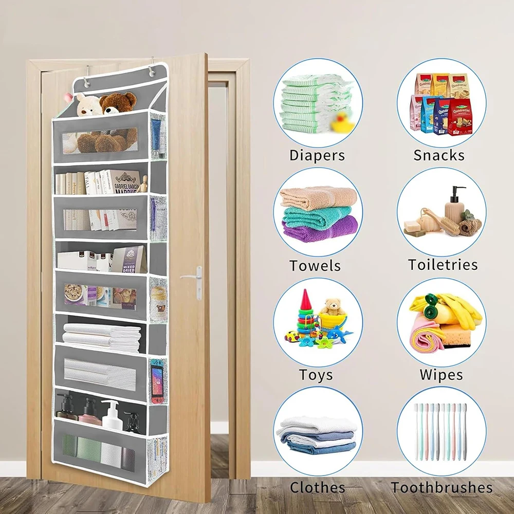 Measuring 57.8 inches x 15.7 inches x 5.5 inches, this elegant and minimalist behind door organizer can also be used as a bathroom door organizer and diaper storage organizer, making it a solution for an absolutely tight space.