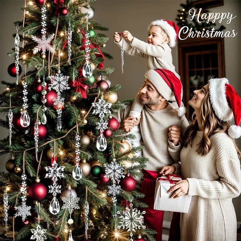 10Pcs Sparkling Snowflake Christmas Tree Hanging Pendant Decor Home Room Decoration Xmas Navidad DIY New Year Gift Wedding Decor