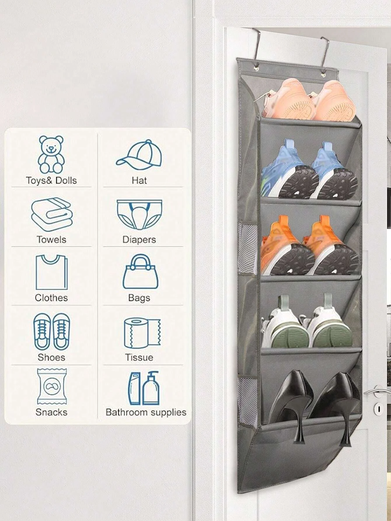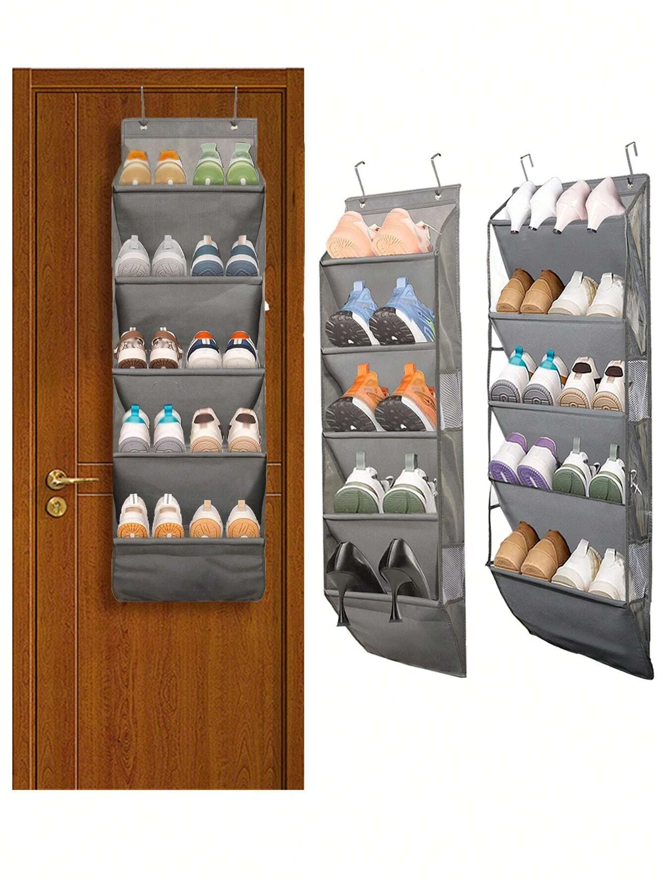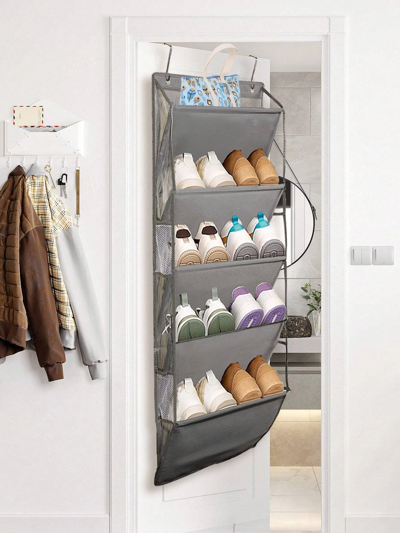1pcs 5-Layer Over The Door Hanging Shoe Organizer, Gray Non-Woven Fabric Shoe Storage Hanging Bag,Hanging Shoe Rack