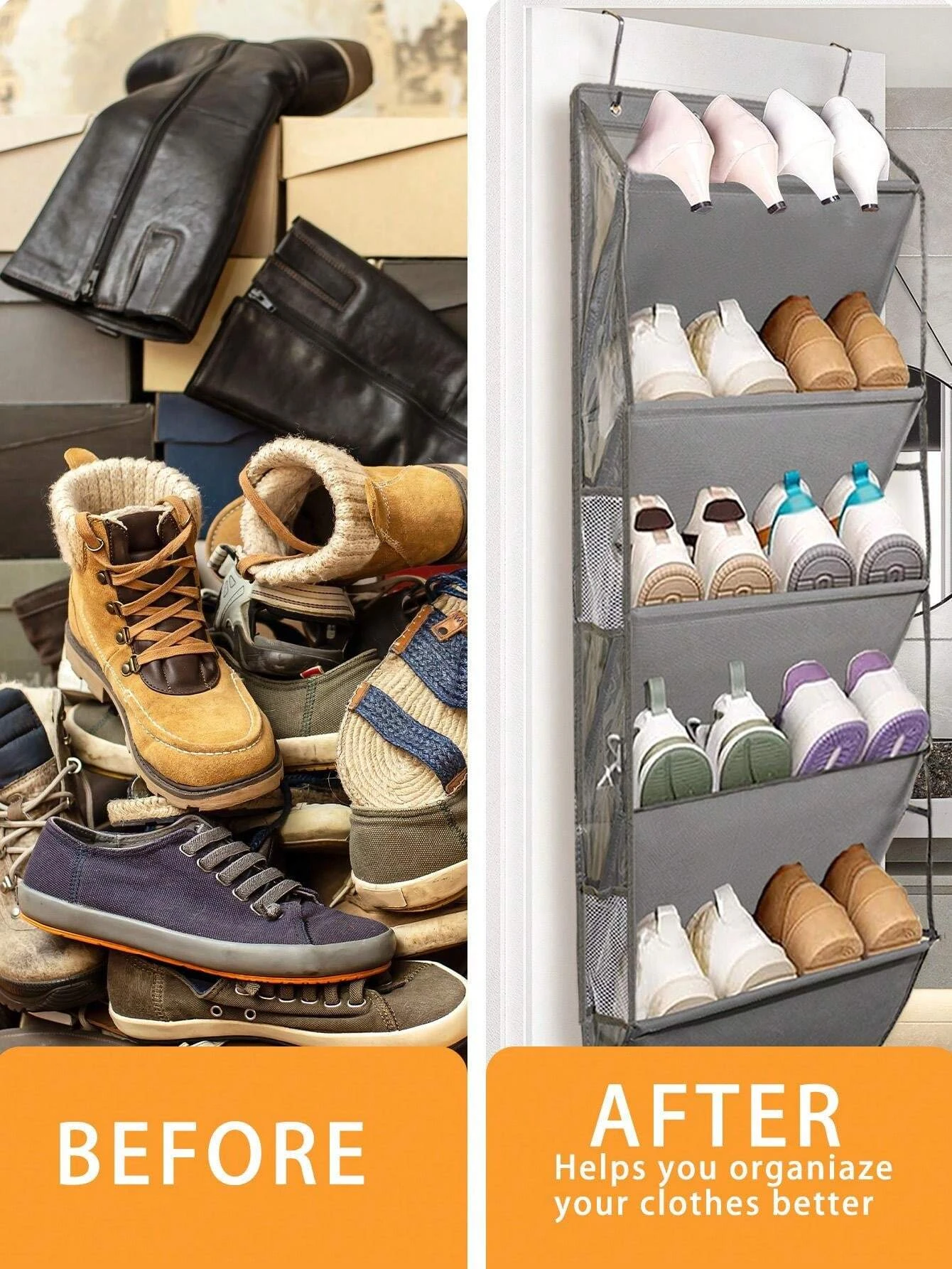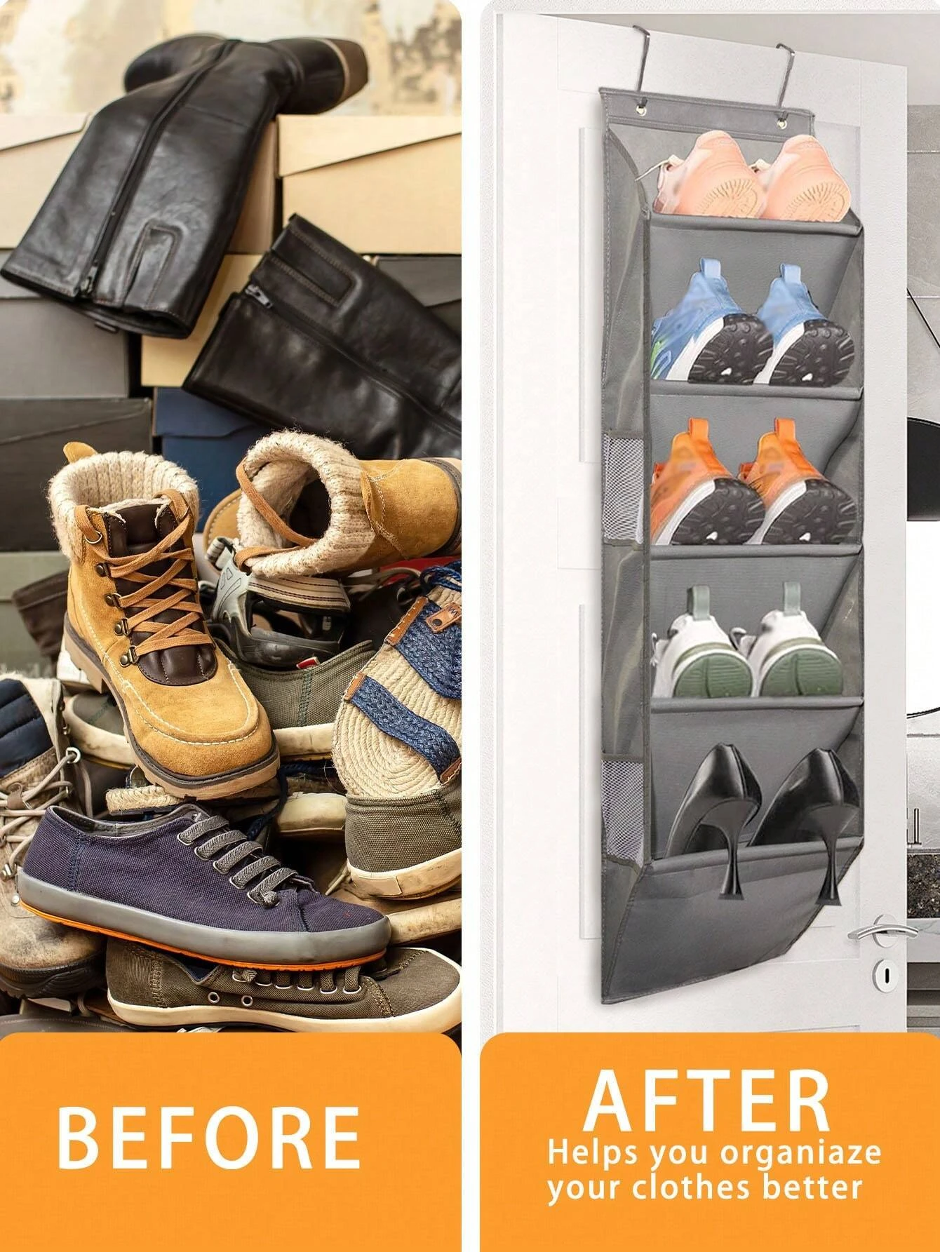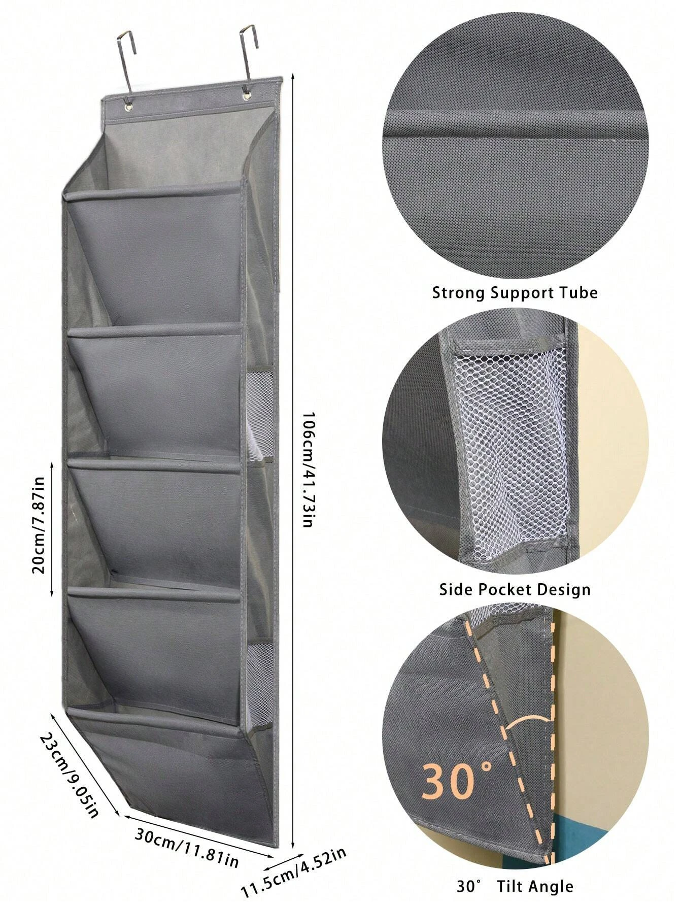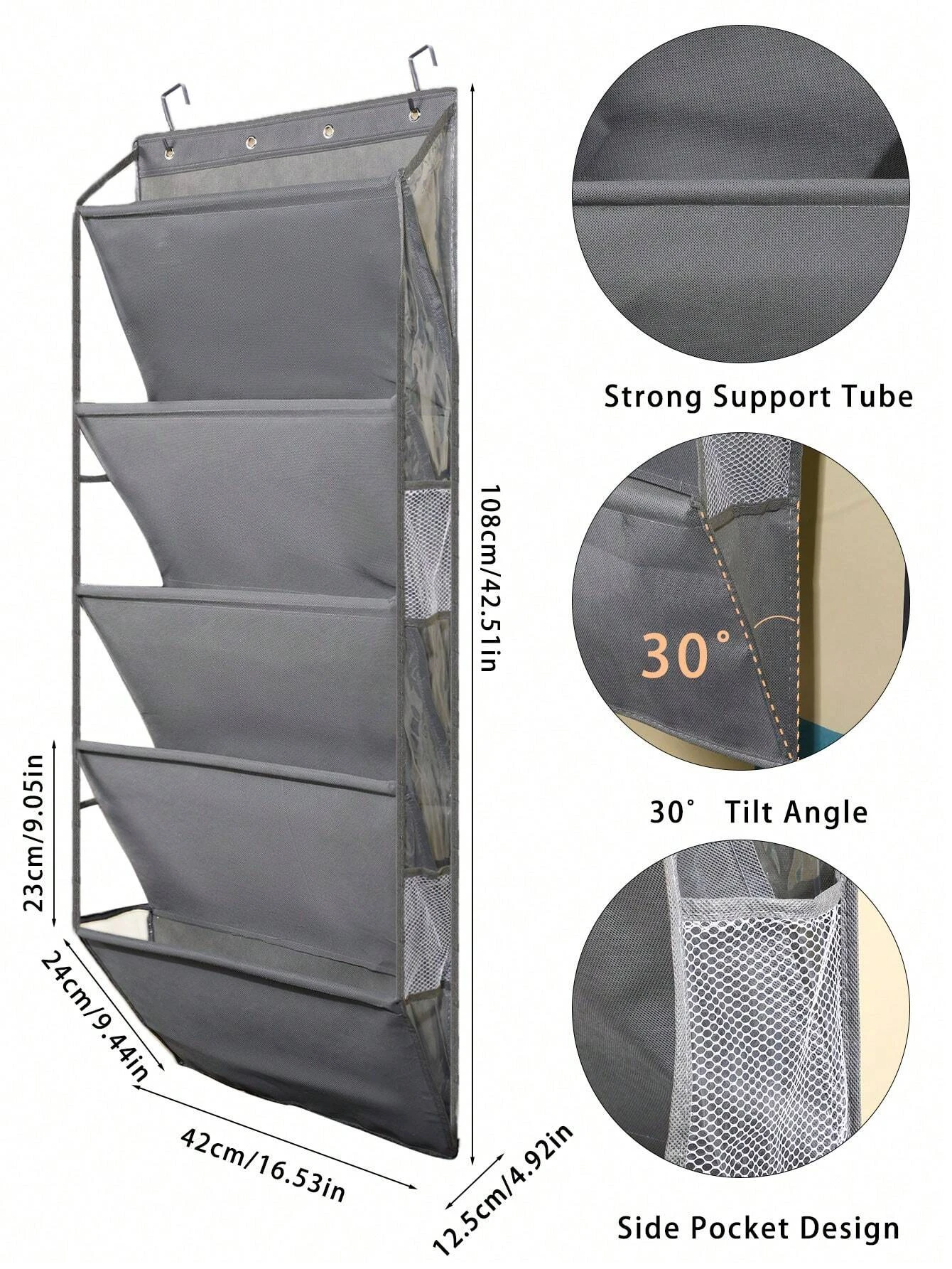 1pcs 5-Layer Over The Door Hanging Shoe Organizer, Gray Non-Woven Fabric Shoe Storage Hanging Bag,Hanging Shoe Rack