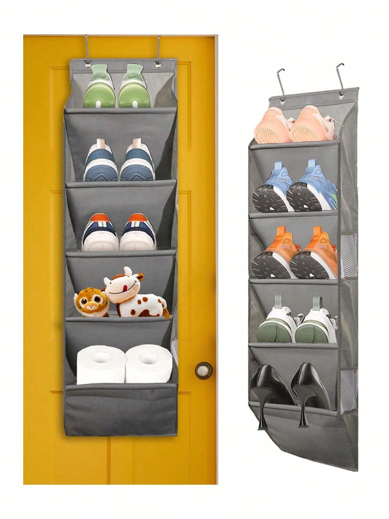 1pcs 5-Layer Over The Door Hanging Shoe Organizer, Gray Non-Woven Fabric Shoe Storage Hanging Bag,Hanging Shoe Rack