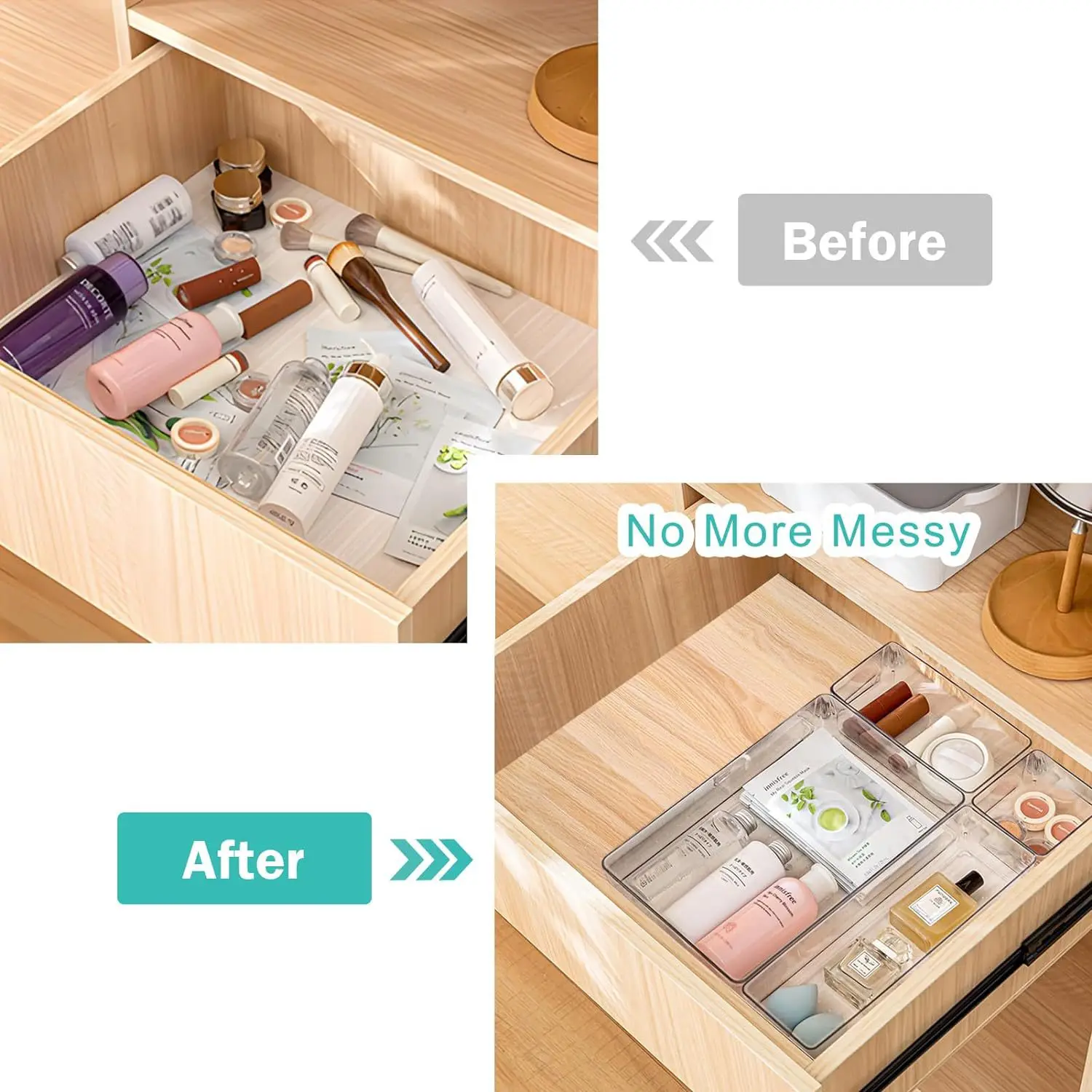 This transparent drawer organizer is perfect for storing a variety of items, from kitchen utensils to cosmetics, keeping your desktop clutter-free.