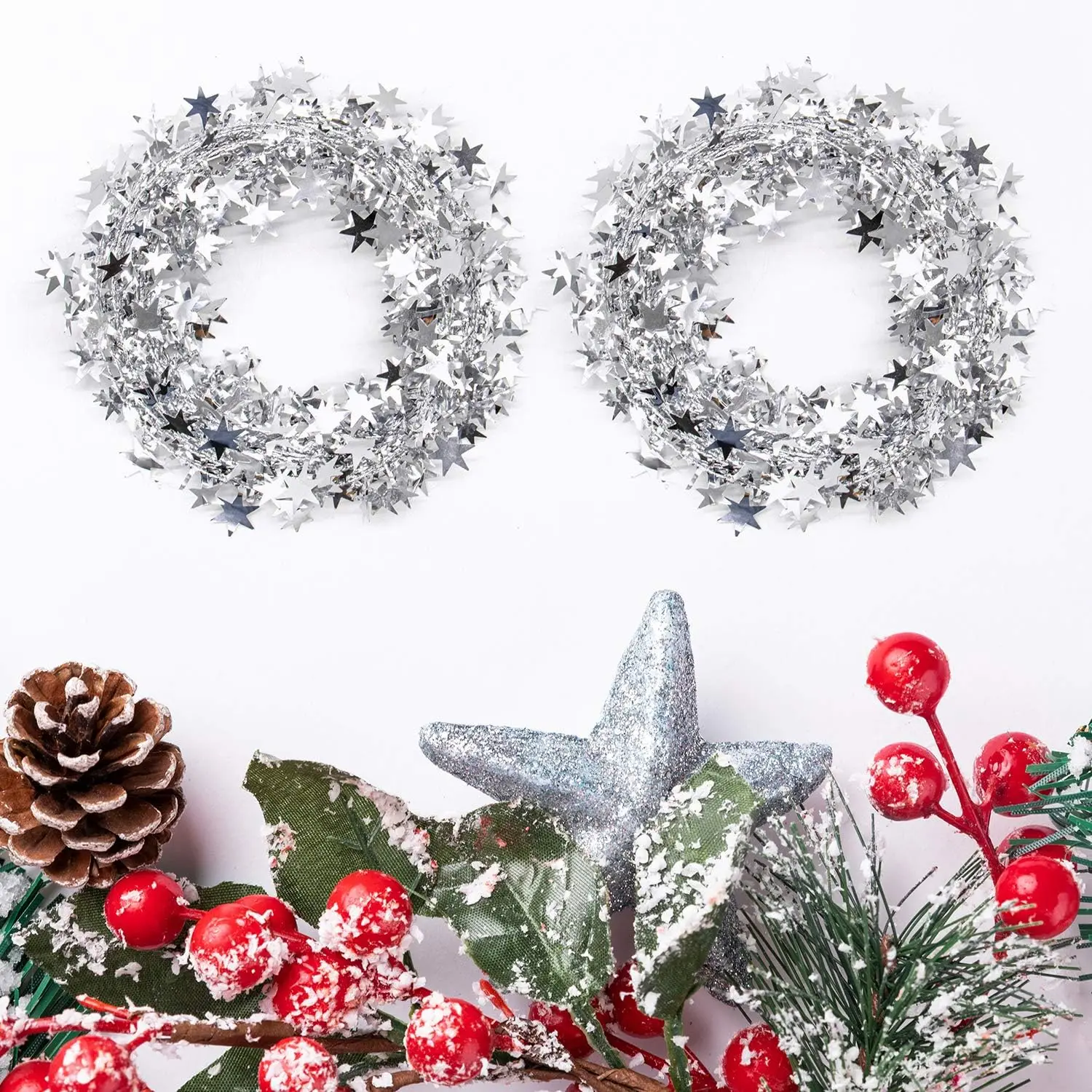 2 Rolls 5m Sparkly Star Tinsel Garlands,Christmas Decorations for Xmas Tree