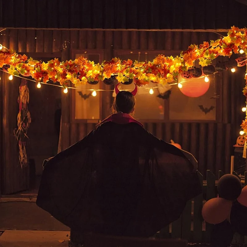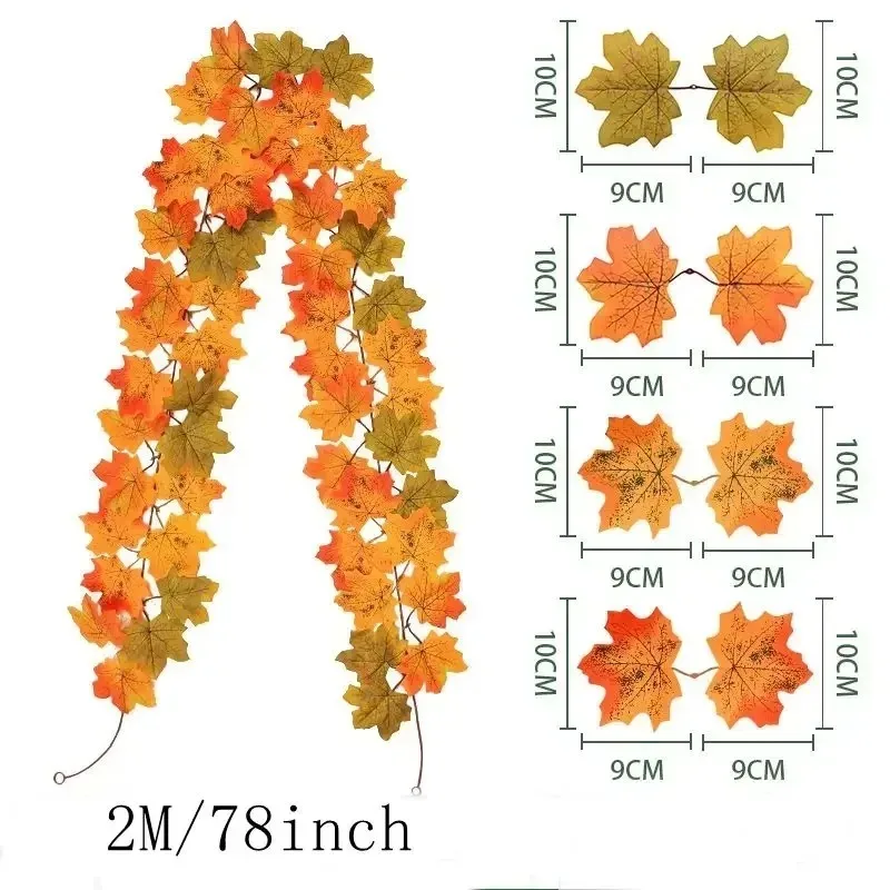 200CM Autumn Artificial Maple Leaf Wreath Fake Leaf Plant Vine Home Decor Garden Halloween Wall Outdoor Doors Windows Decoration
