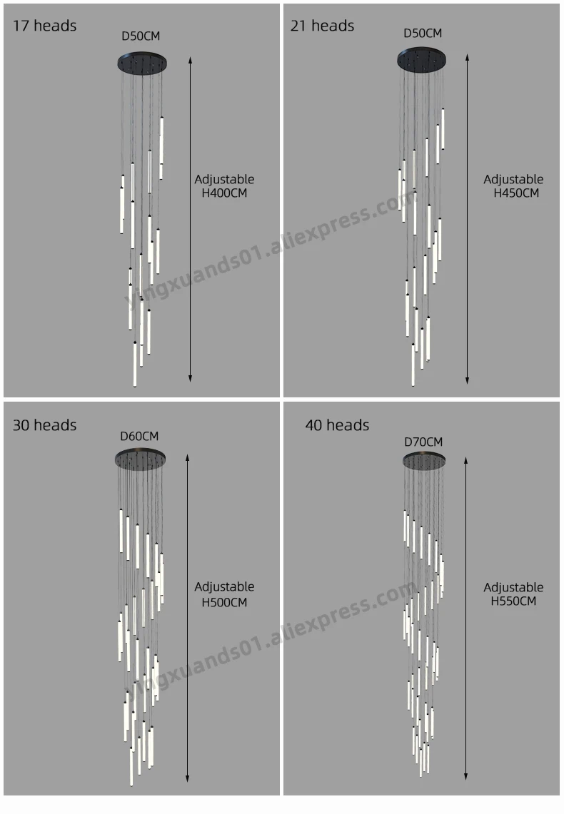 17 heads, diameter 50cm, height lamp+total length 400cm