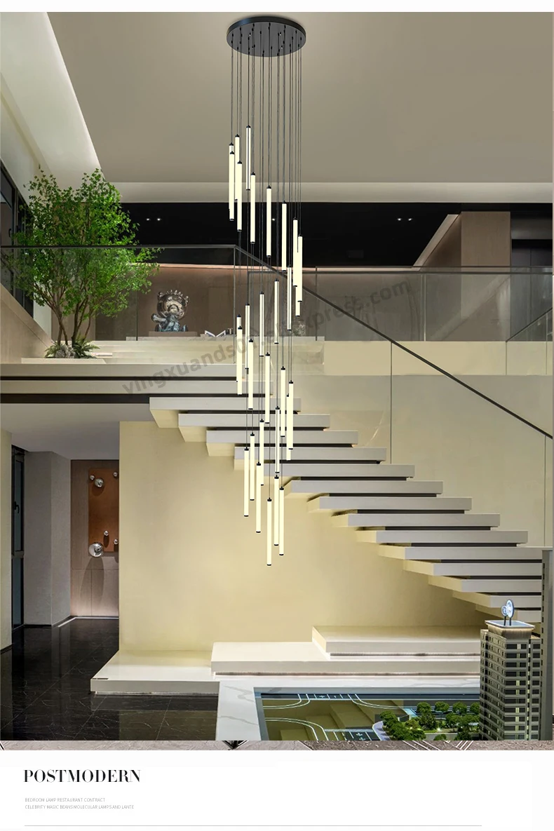 2023 Long Strip Staircase Pendant Lamp Villa Family Staircase Hotel Lobby LED Pendant Lamp Creative Decoration Long Pendant Lamp