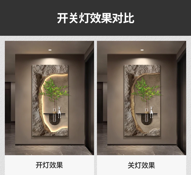 2024 Hydroponic green decorative painting background cream senior living room hanging painting sandstone new LED lights