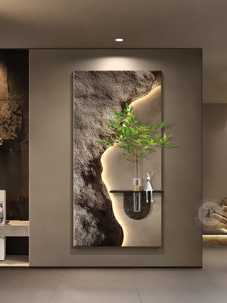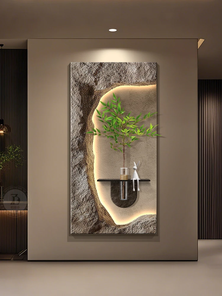 2024 Hydroponic green decorative painting background cream senior living room hanging painting sandstone new LED lights