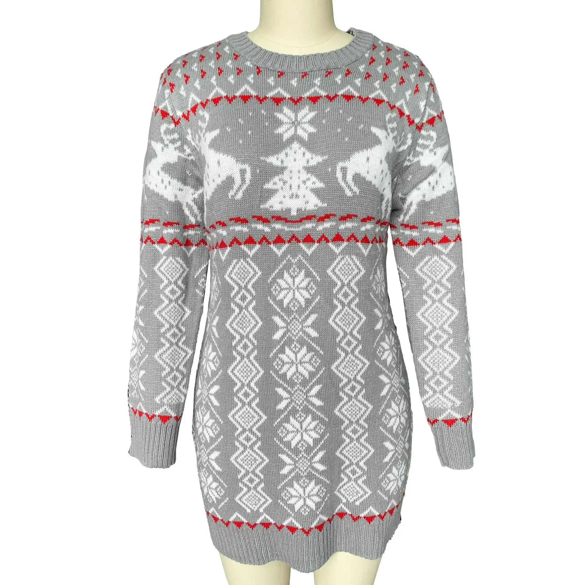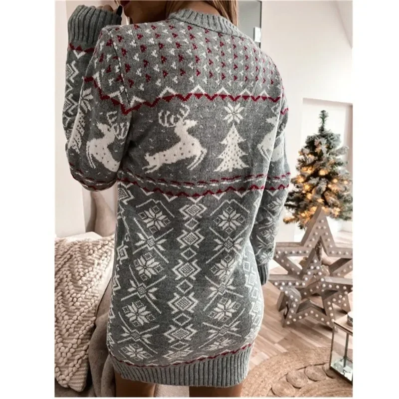 2025 Winter Women Christmas Sweater Dress Cartoon Elk Print Full Sleeve Knitted Vestidos Jumpers Sexy Bodycon Dresses Xmas Look