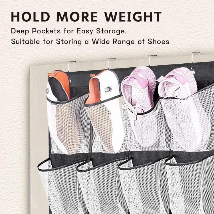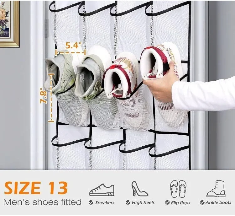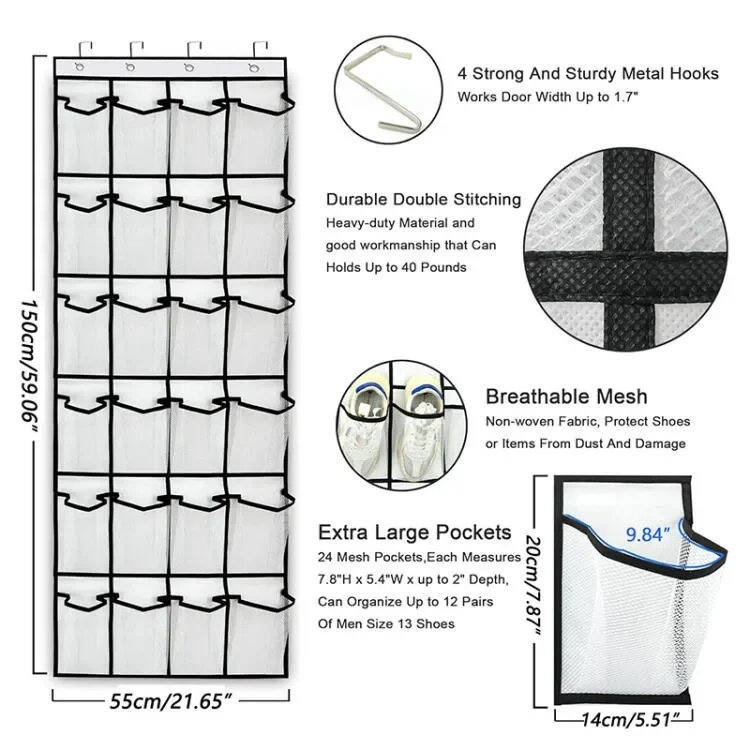 24 Mesh Pockets Shoes Storage Bag Wall-mounted Behind Door Closet Shoe Hanging Rack Organizer Space Saver Sundries Pouch Items