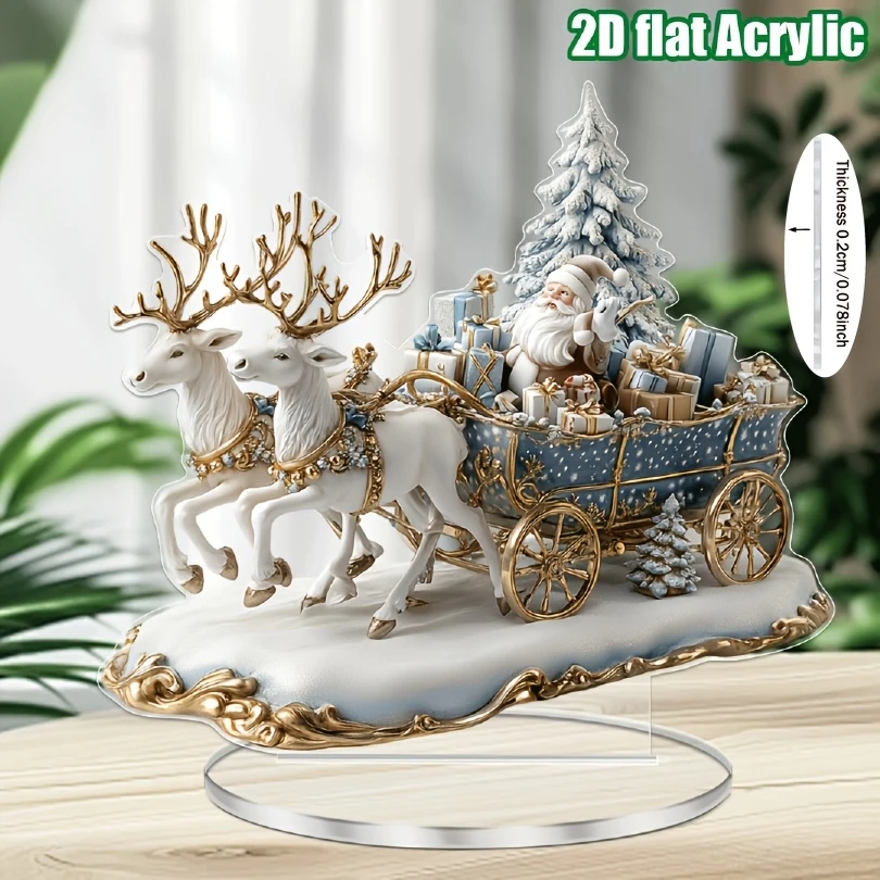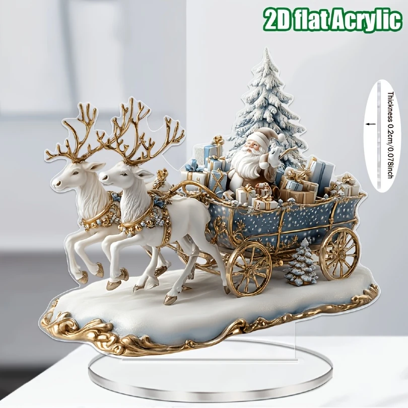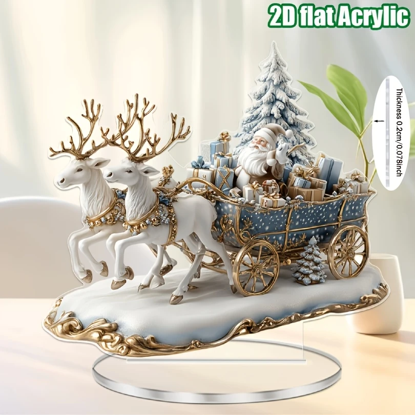 2D Bohemian-Style Acrylic Santa Sleigh Figurine Dreamy Christmas Elements Tabletop Decoration Festive Boho Christmas Gift