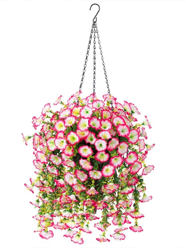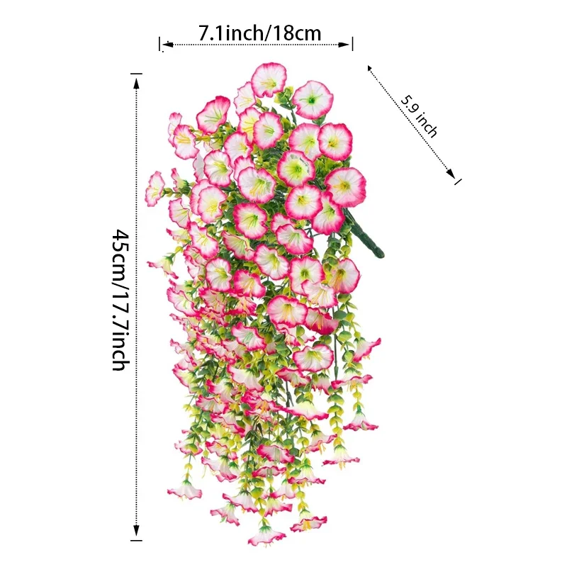 2PCS Artificial Morning Glory Hanging Flowers Fake Flower Outdoor Home Garden Wall Hanging Petunias Plants Wedding Decoration