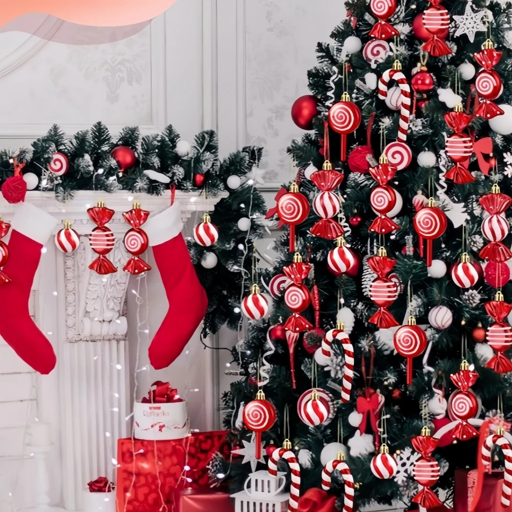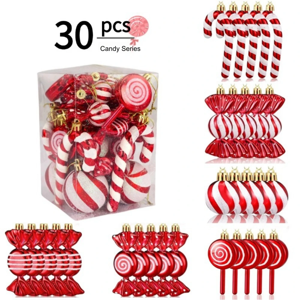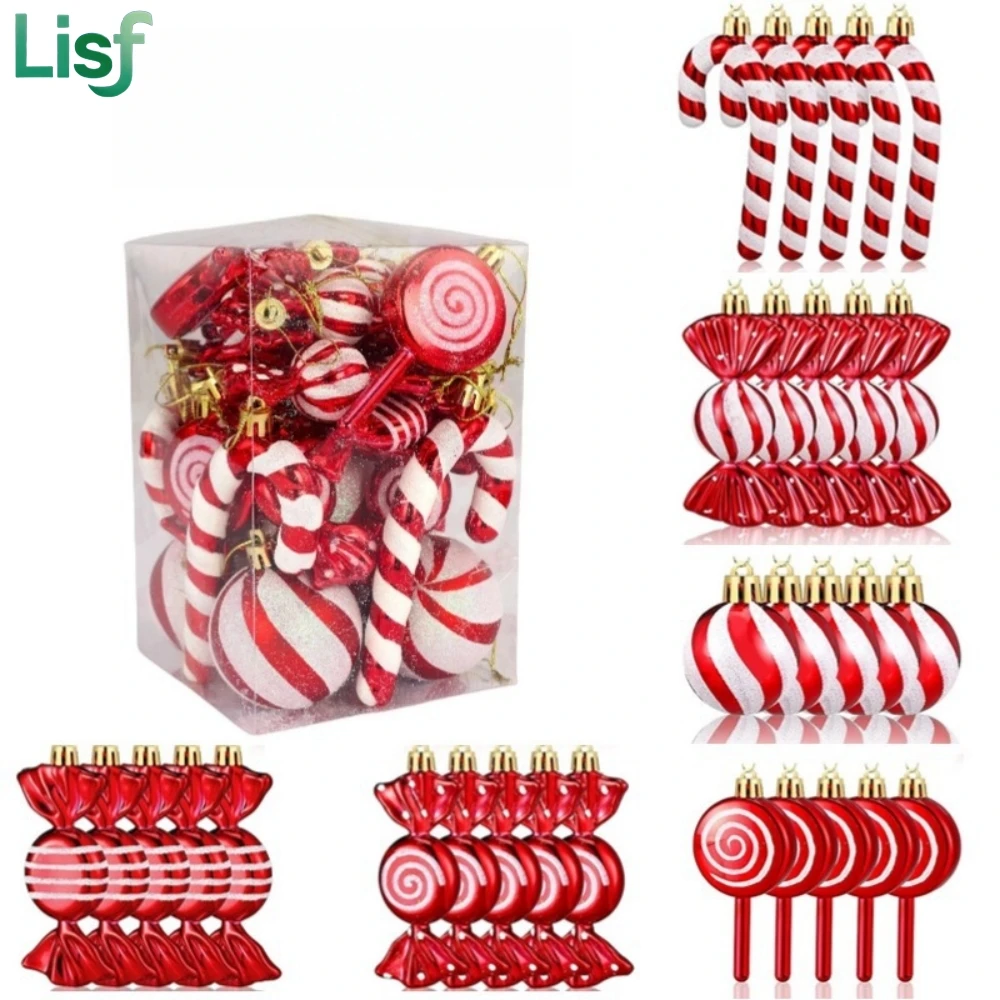 30pcs Christmas Candy Xmas Tree Hanging Ball Ornaments Christmas Decorations Lollipop Candy Cane for Home 2025 New Year Gift