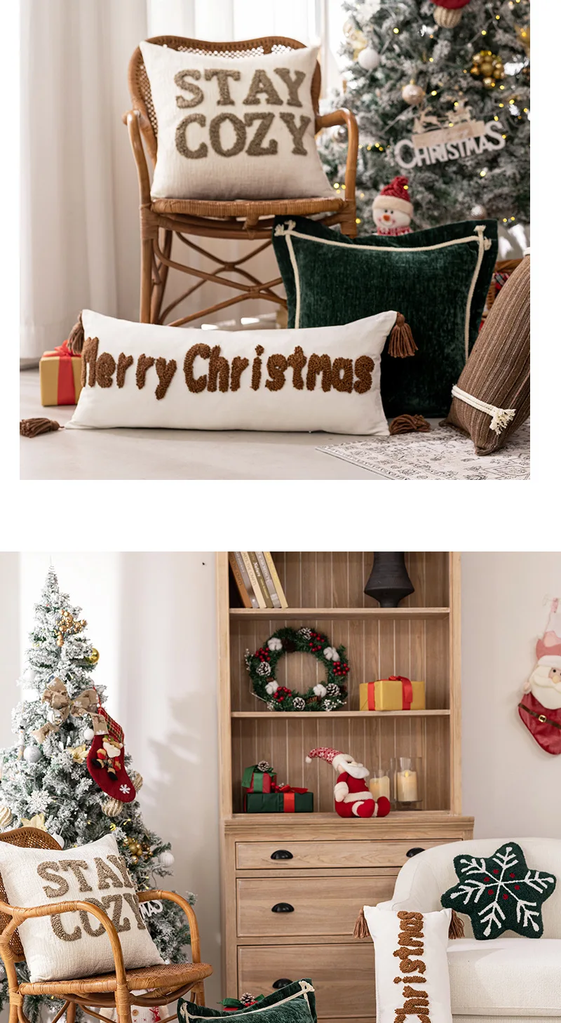 30×50/45X45CM Merry Christmas Throw Pillow Cover Embroidery Waist Cushion Cover New Year Decor Home Decorative Pillowcase