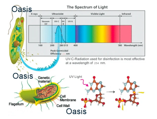 The inclusion of Ultraviolet (UVC) radiation ensures the inactivation and elimination of viruses, bacteria, spores, microorganisms, and pathogens while the unit is in operation.The UVC Lamps are discreetly installed in the air and water tanks and are not visible to the naked eye.