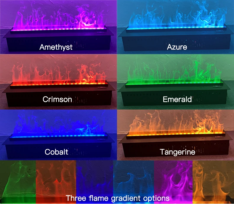 The 3D atomizing fireplace should be installed horizontally in a fixed location to minimize air convection.