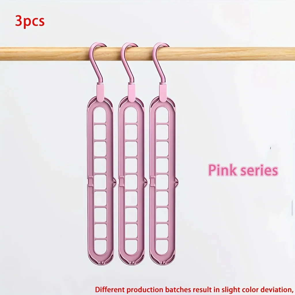 3pcs, Plastic 9-Hole Foldable Hangers, Heavy Duty Space Saving Clothes Organizer Hangers, For Room, Closet, Wardrobe, Home & Dor