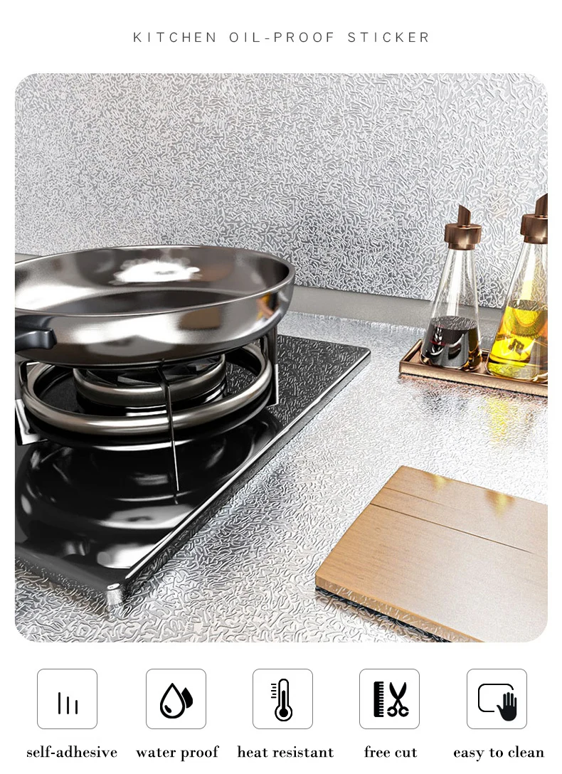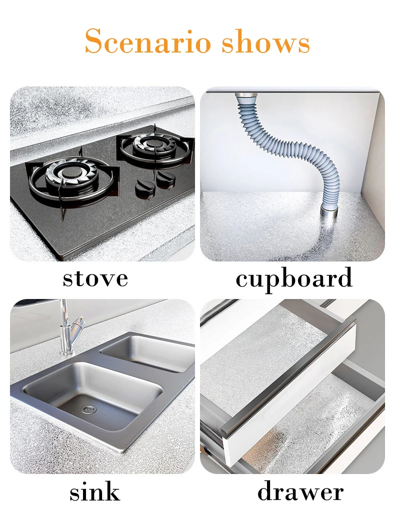 40cm Kitchen anti oil sticker self-adhesive aluminum foil and water resistant stickers used for countertop drawer cabinet