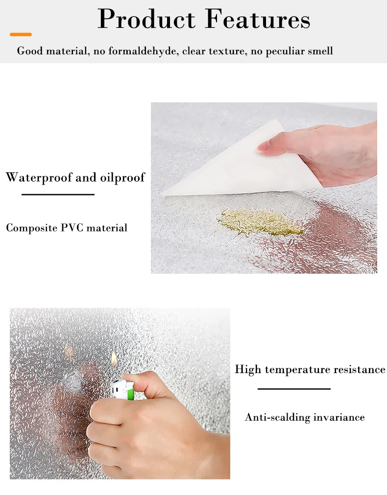 Anti-oil, anti-dust and anti-water: Made from plastic and aluminum foil, much stronger against fire than normal PVC sheet. Resistant to heat and moisture, Easy wipe to remove the stains!