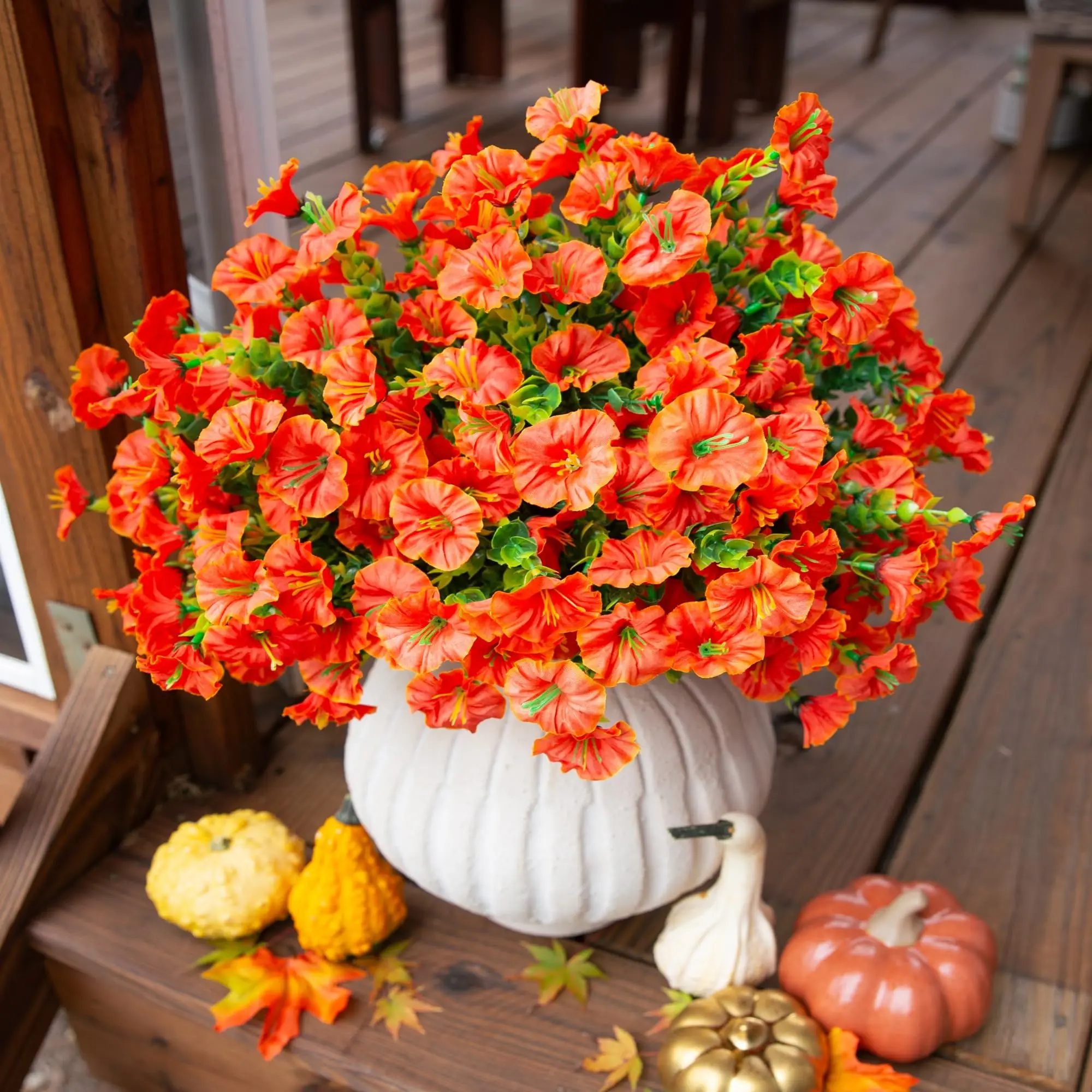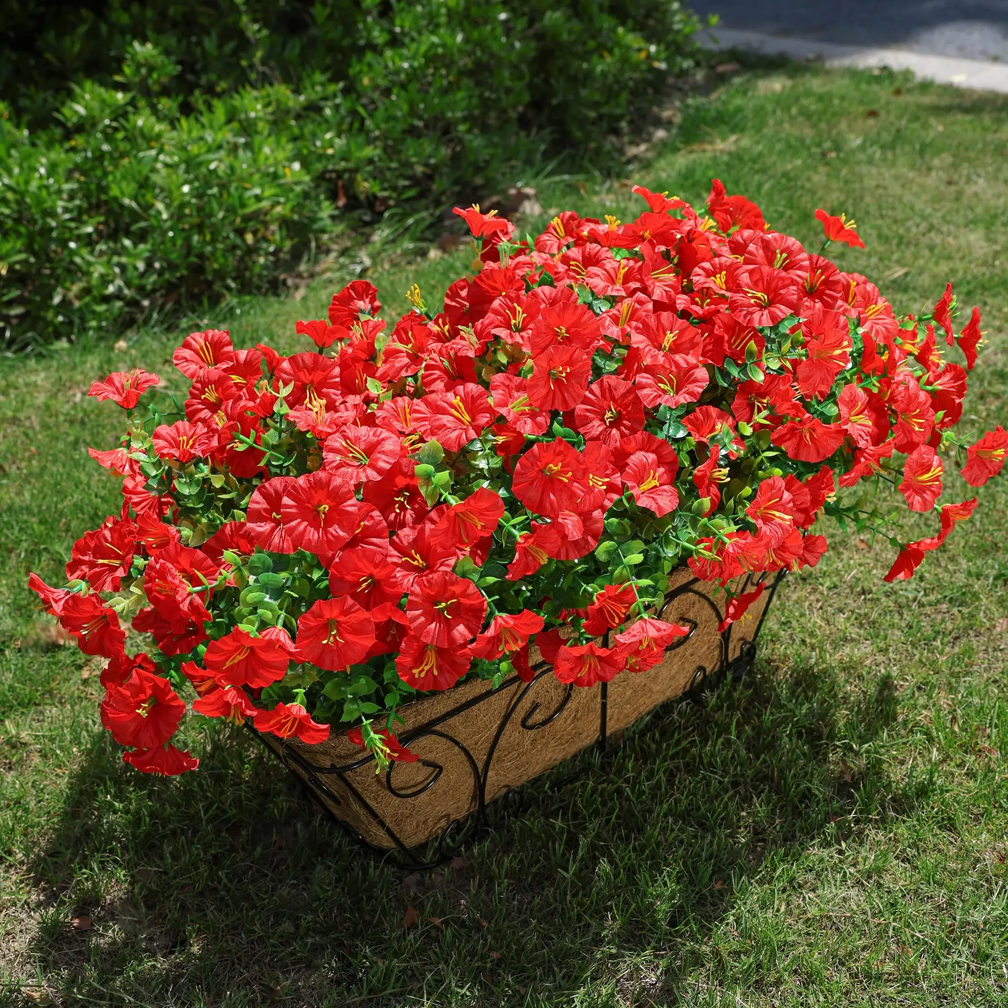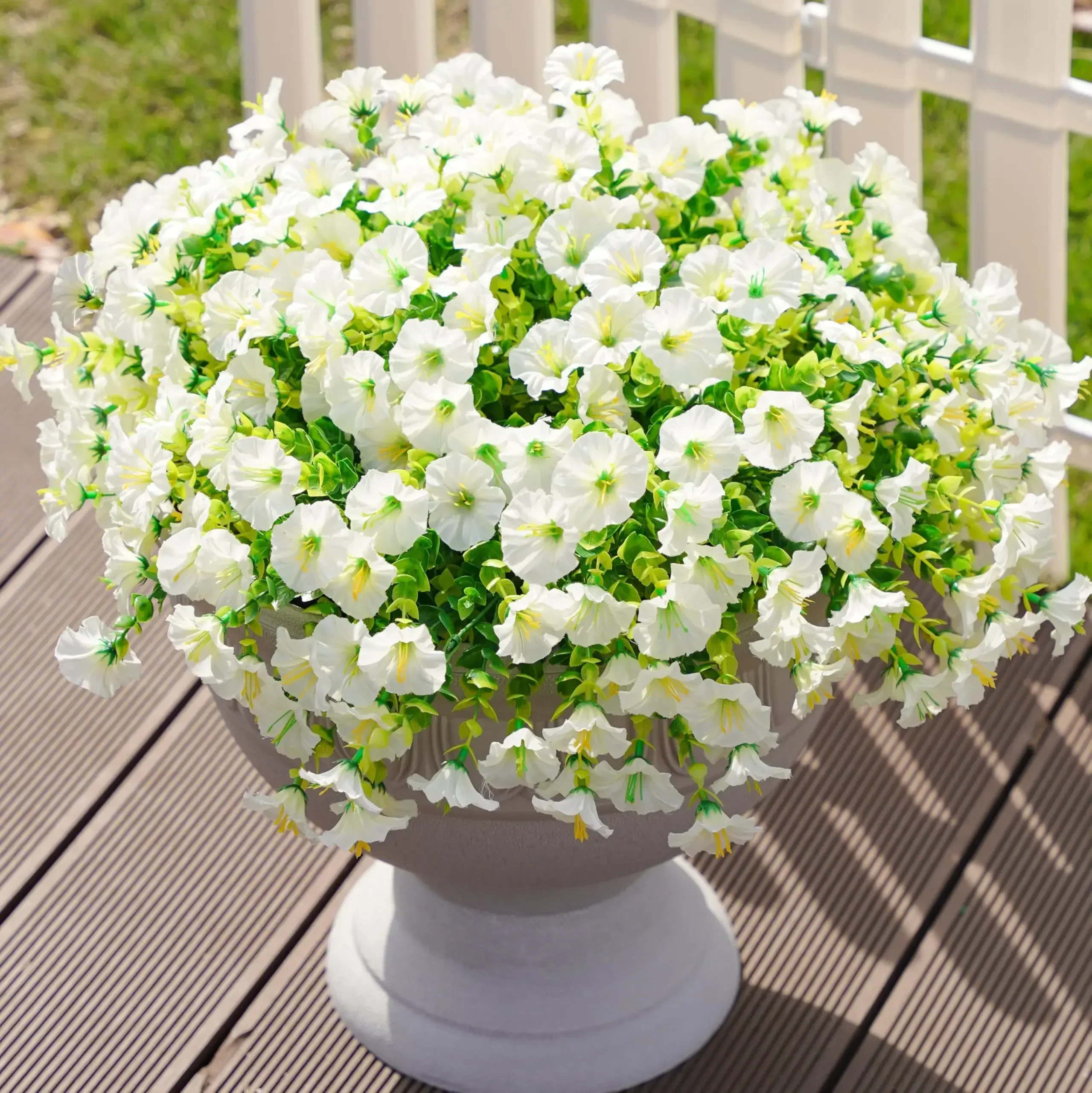 4Bundles Artificial Flowers Fake Silk Morning Glory Flower Eucalyptus Plants UV Resistant Garden Summer House Outdoor Decoration