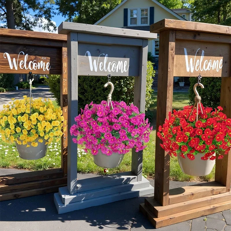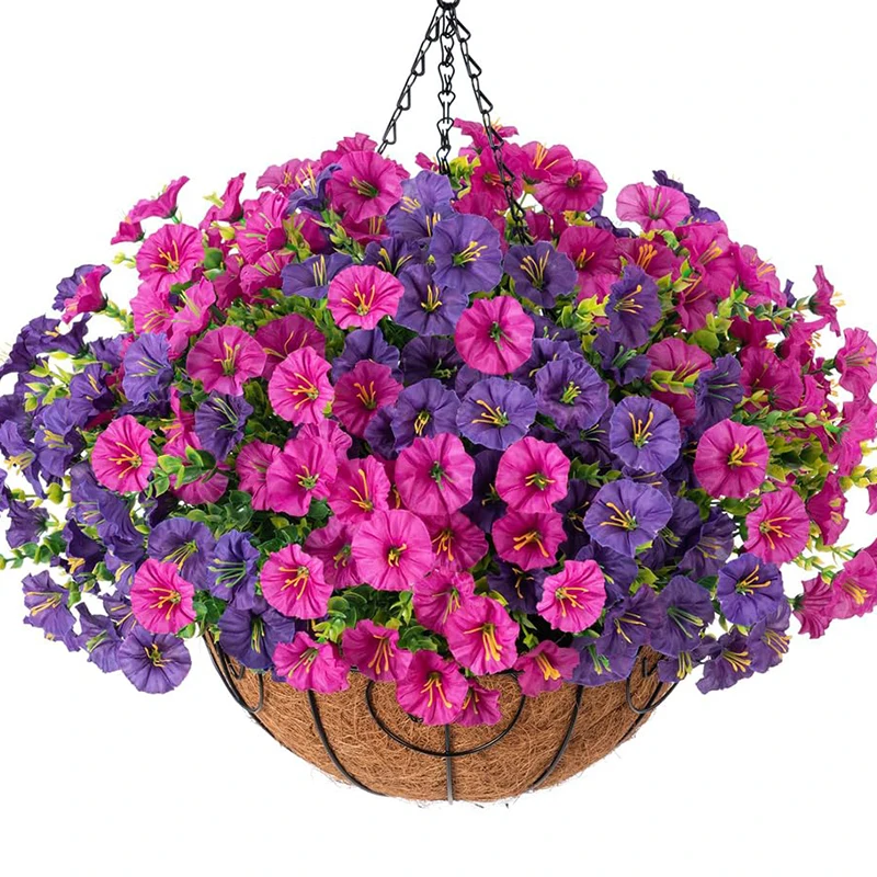 4Bundles Artificial Flowers Fake Silk Morning Glory Flower Eucalyptus Plants UV Resistant Garden Summer House Outdoor Decoration