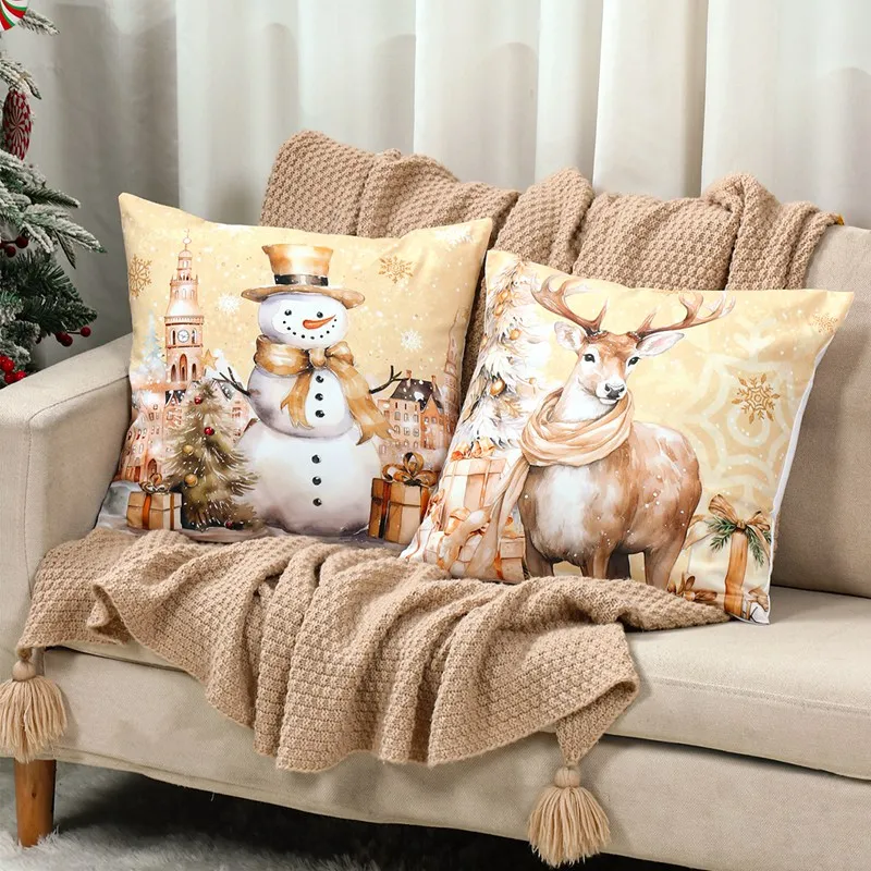 4pcs Merry Christmas Cushion Cover Home Decorations 2025 Christmas Ornament Pillow Case Xmas Navidad Gifts New Year Gifts 2026