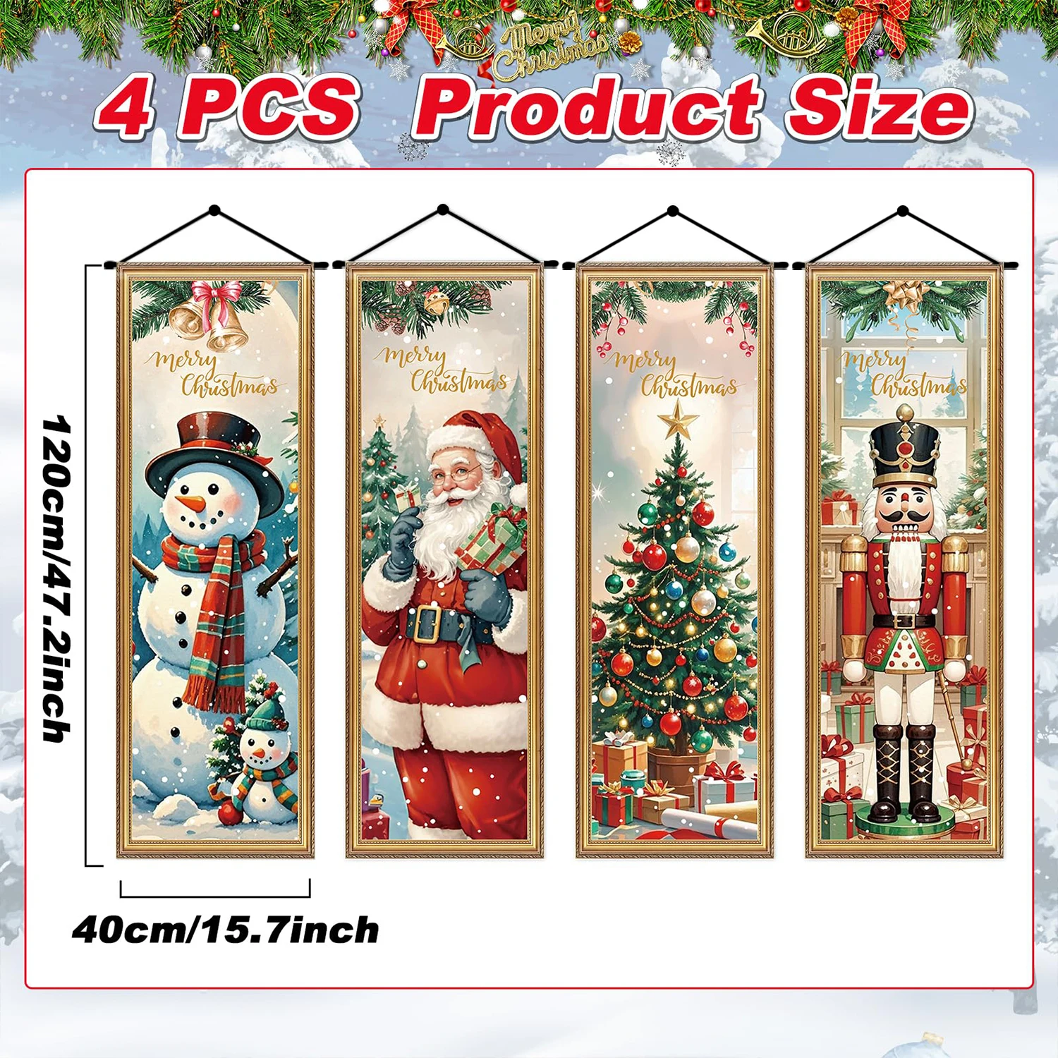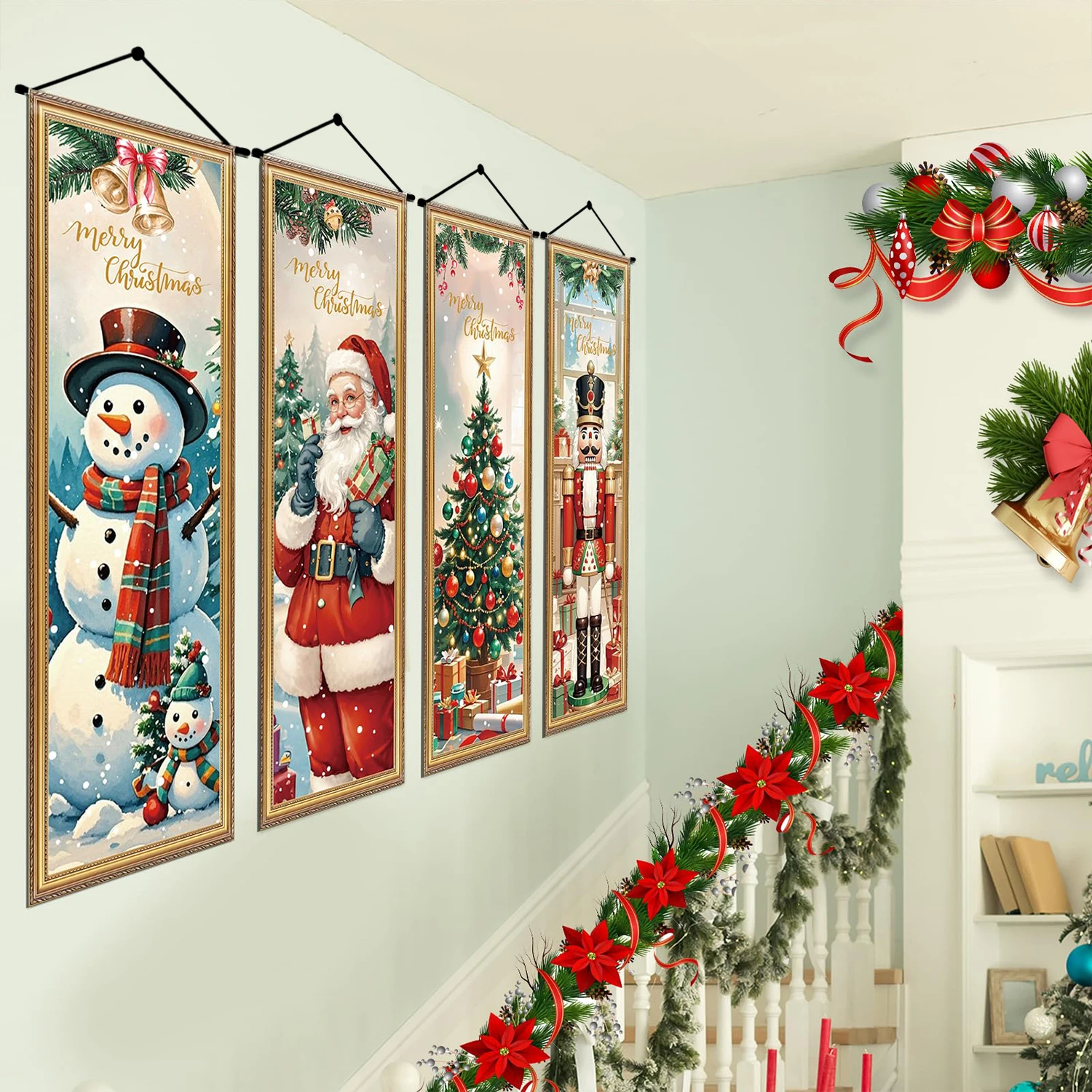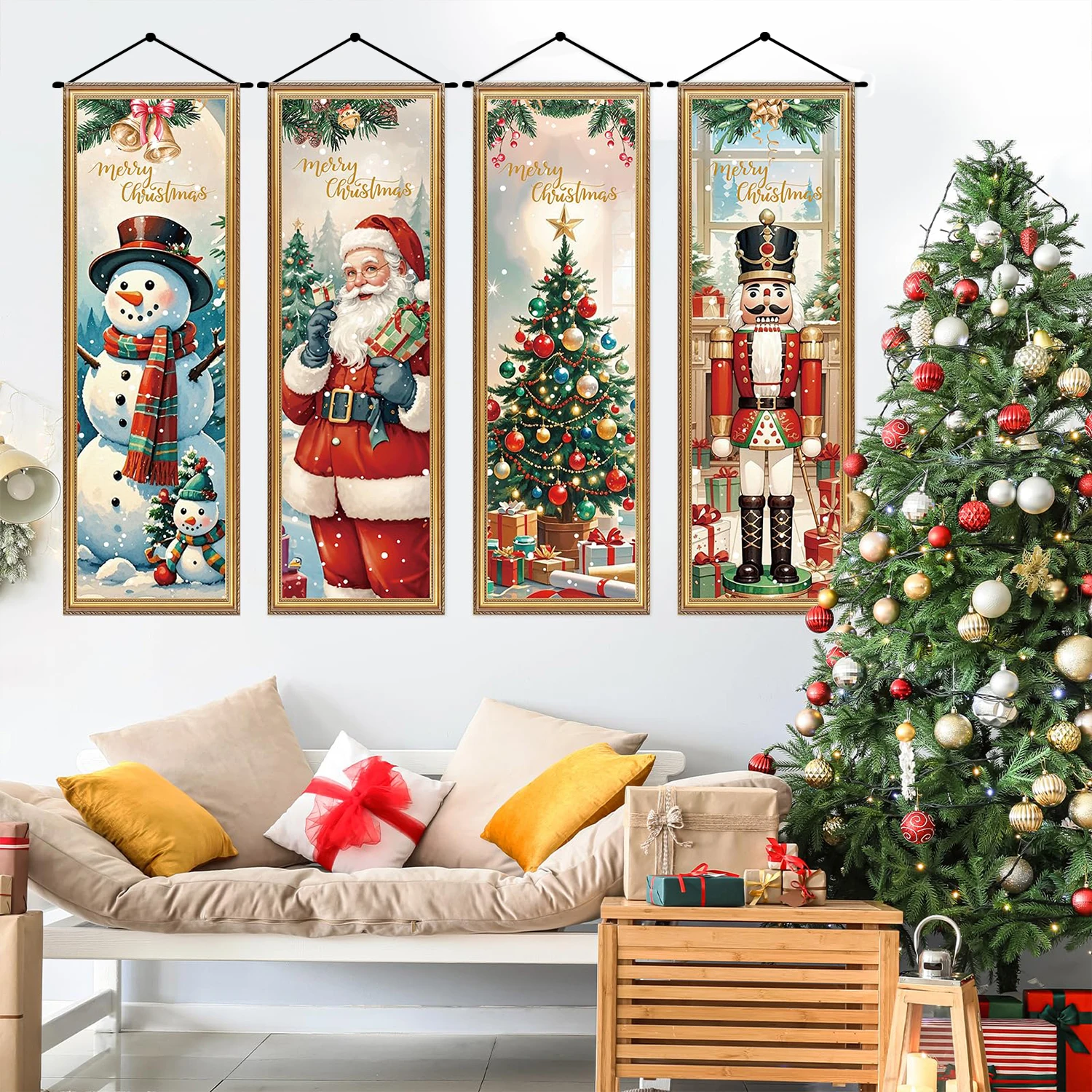 4pcs retro Christmas Santa Claus The Nutcracker Door Couplet Merry Xmas Decor 2025 Door Banner Navidad Natal Gift New Year 2026