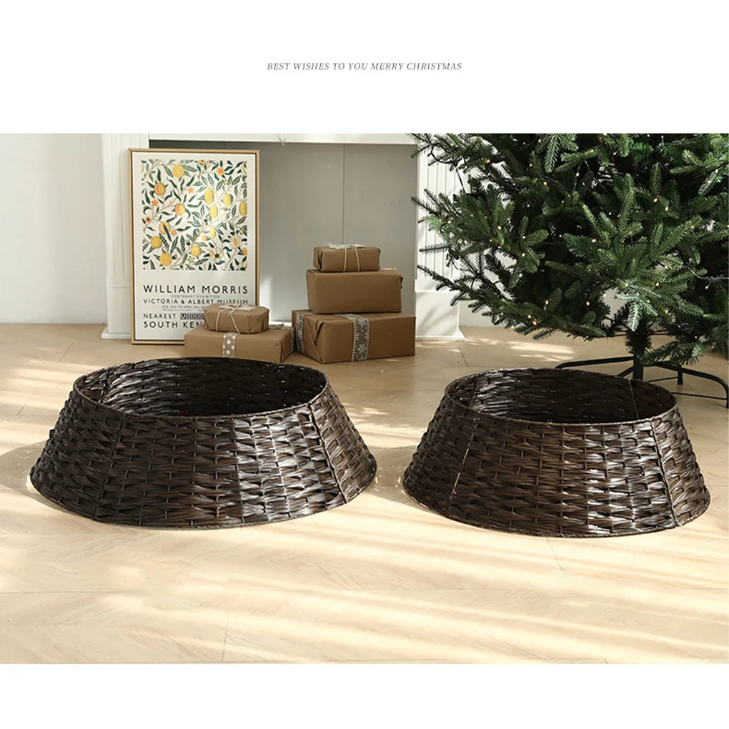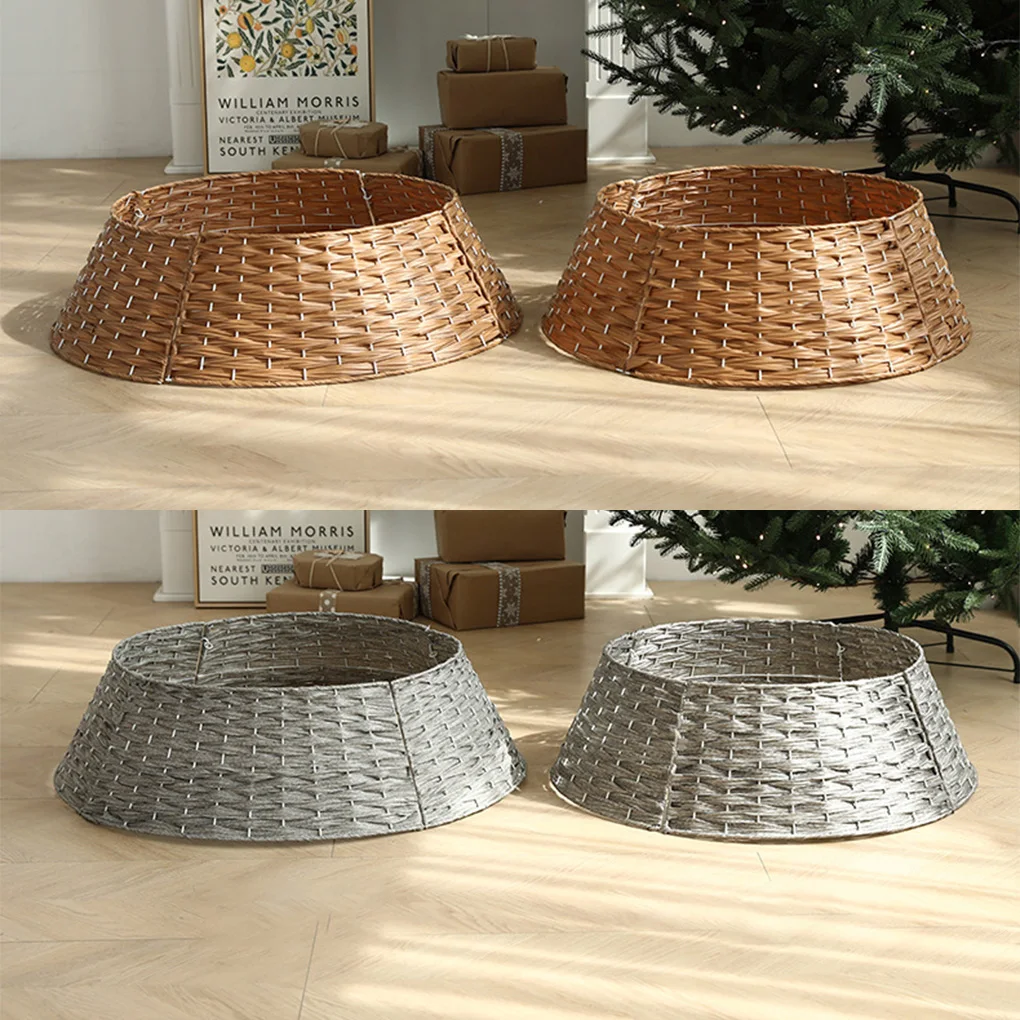 58/60/70CM Christmas Tree Base Fence Hand-woven Basket Christmas Decorative Tree Skirt Family Party Christmas Decoration