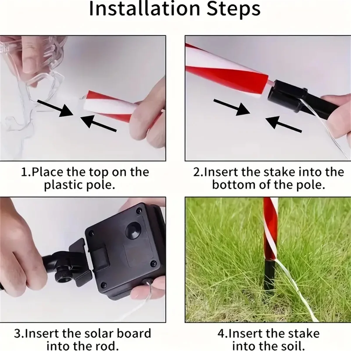 • 【Energy Efficient & Auto ON/OFF】The Christmas pathway lights are powered entirely by the sun. No need pay for extra electricity bills. Just turn on the switch button on the back of the solar panel. With built-in light sensor, the candy cane decorations turn on automatically at dusk and turns off at dawn. They can light up to 8-10 hours at night after a fully charge of 6-8 hours.