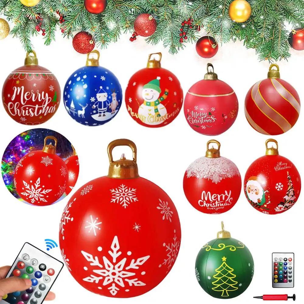 24 Inch Light Up PVC Inflatable Christmas Ball with Light Remote PVC Giant Inflatable Christmas Balls Christmas Decorations Ball