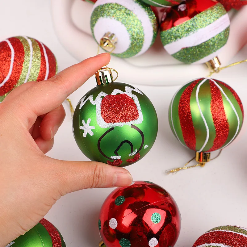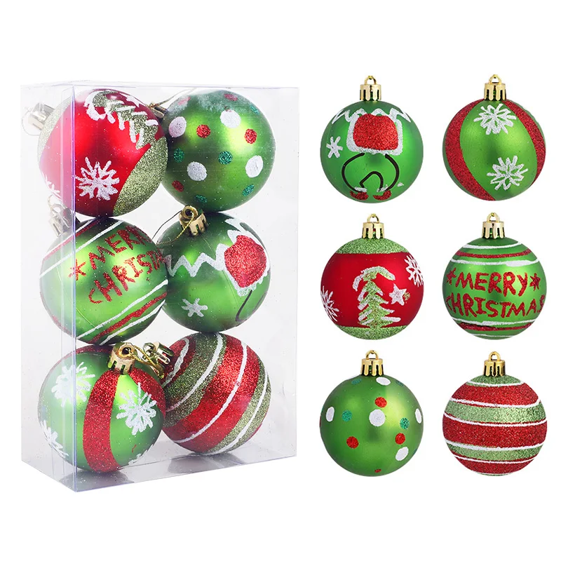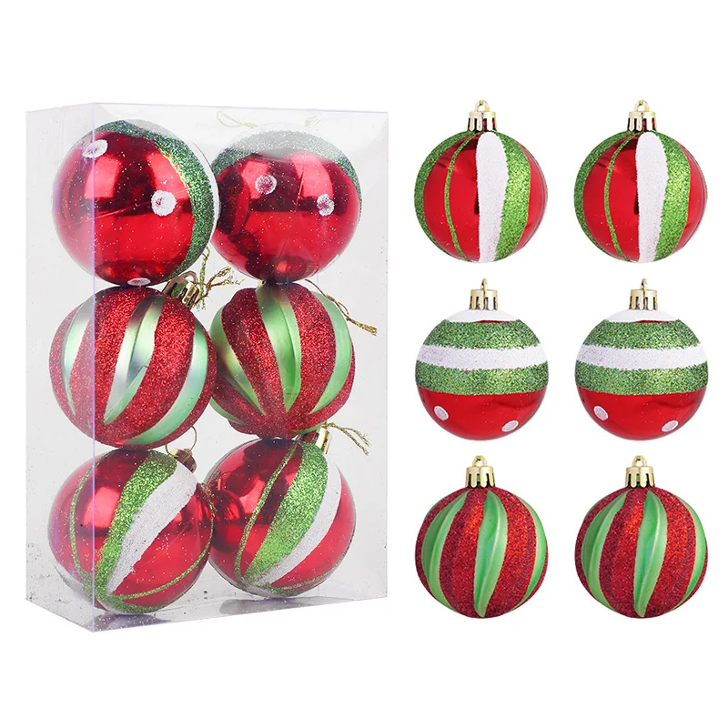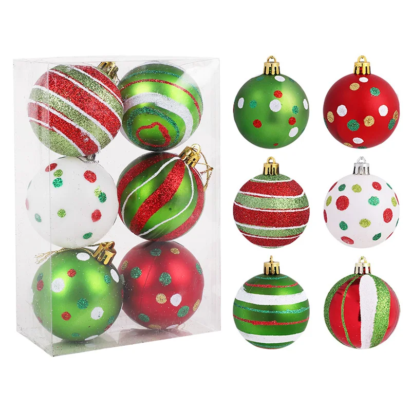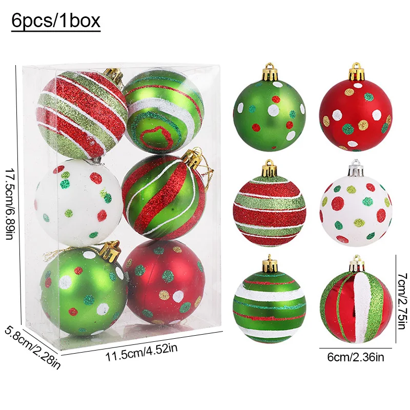 6pcs/box 6cm Christmas Ball Ornaments Glitter Red Green Xmas Tree Hanging Bulbs Pendant 2025 Christmas Party Decoration For Home