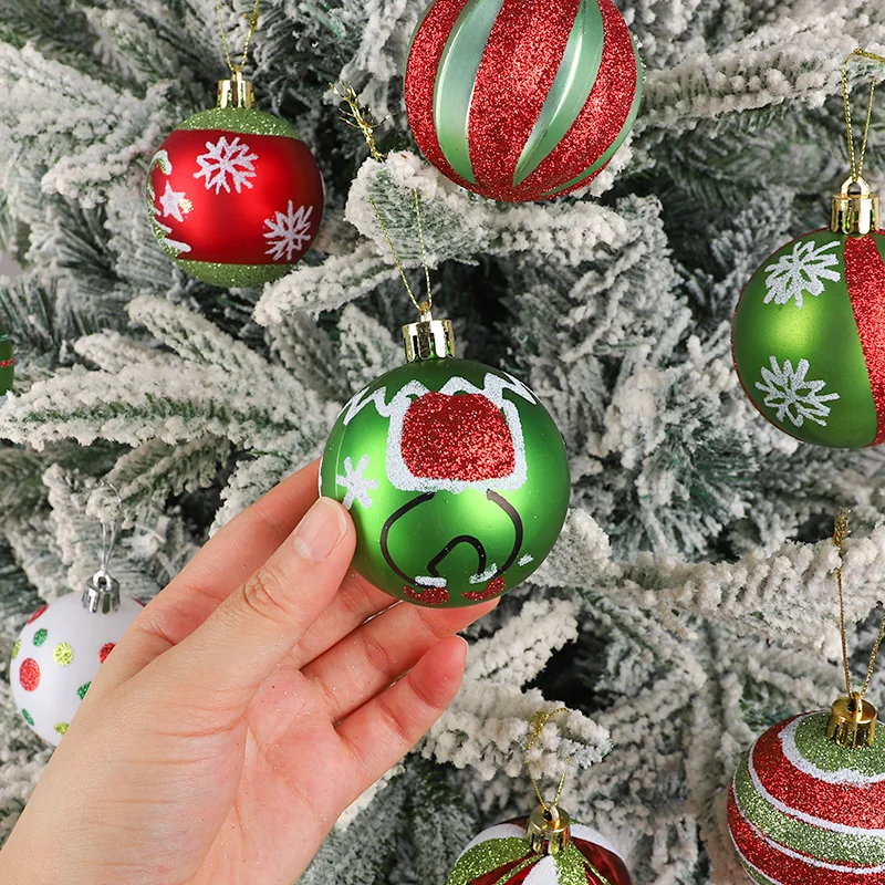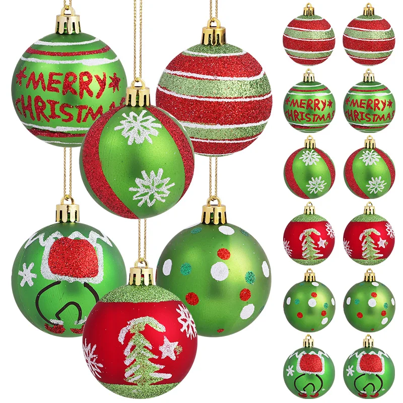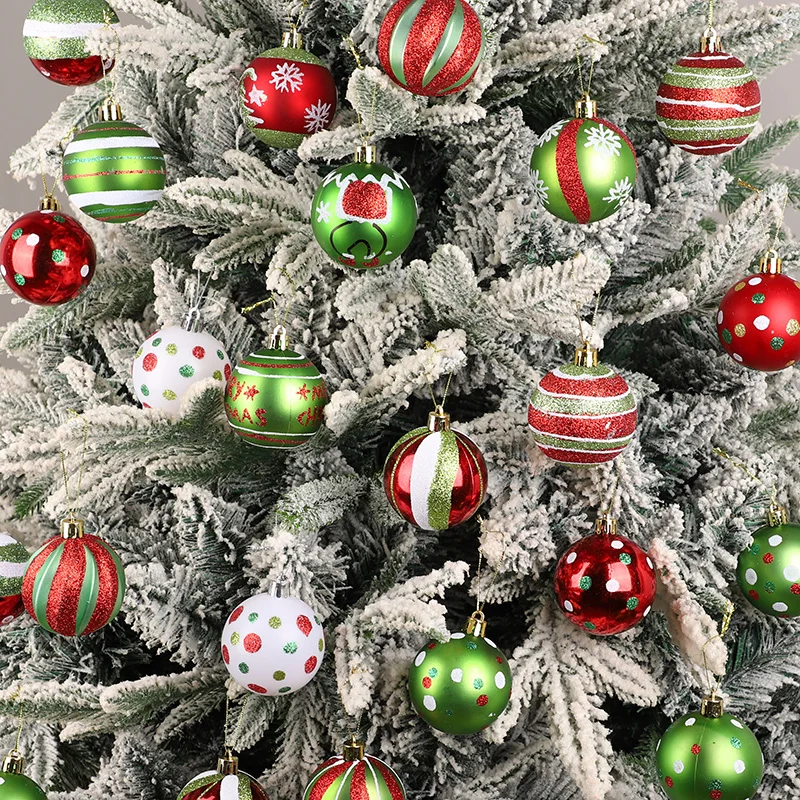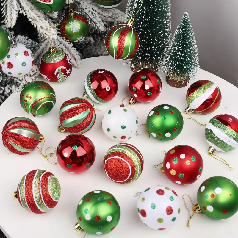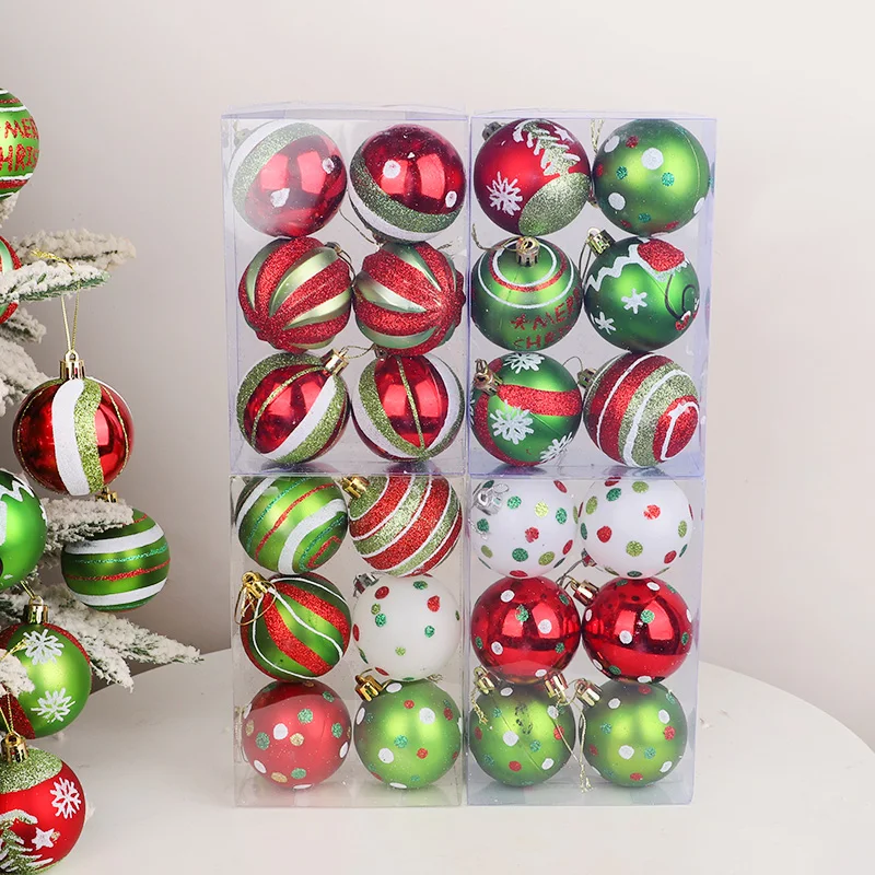 6pcs/box 6cm Christmas Ball Ornaments Glitter Red Green Xmas Tree Hanging Bulbs Pendant 2025 Christmas Party Decoration For Home