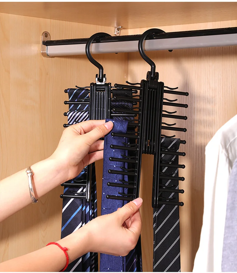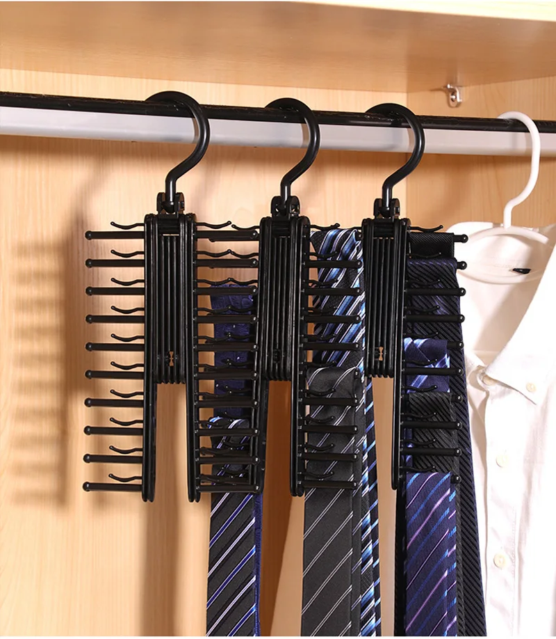 Adjustable Tie Storage Rack 360 Degree Rotating Household Tie Shelf Belt Silk Scarf Artifact Cabinet Organizer Hangers