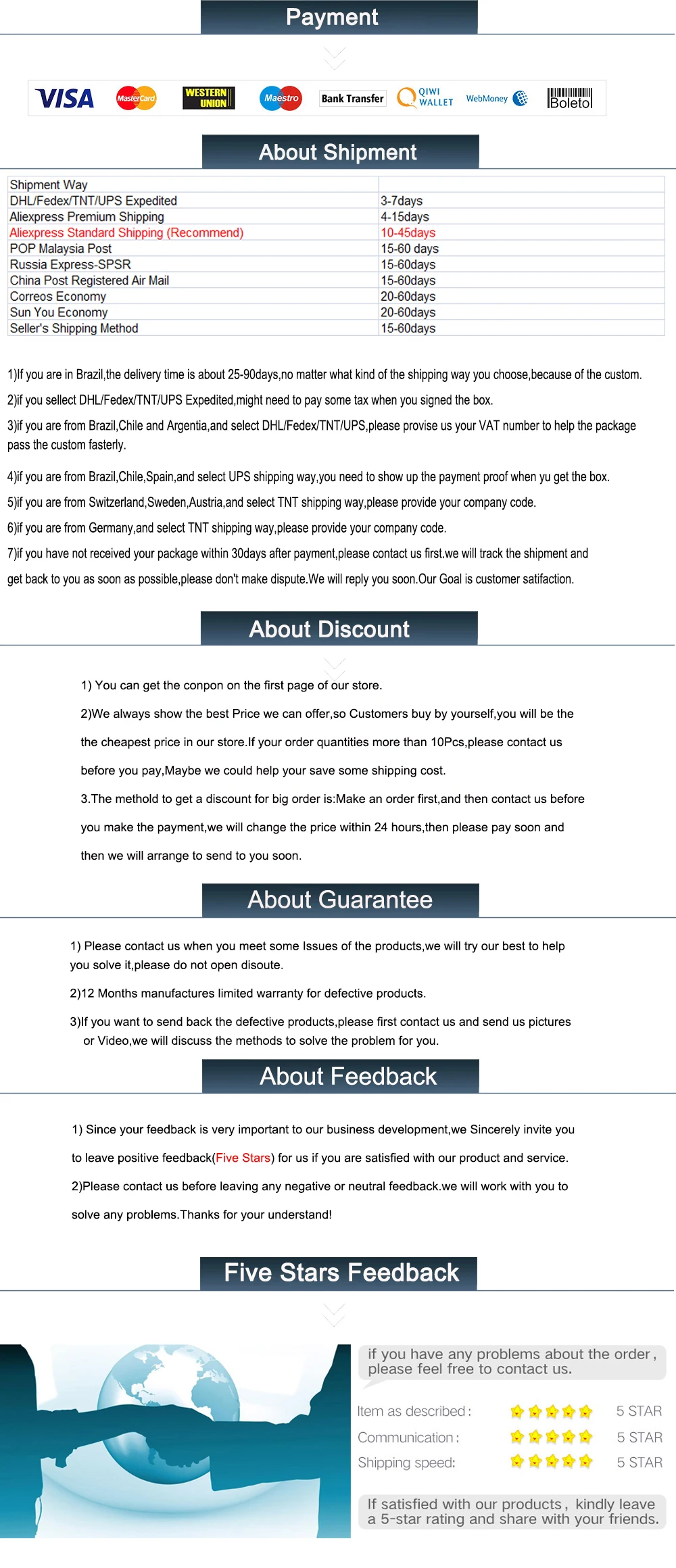 • If you did not receive the product within the guaranteed time( 45 days not including 2-5 day processing) you can request a refund or a reshipment.