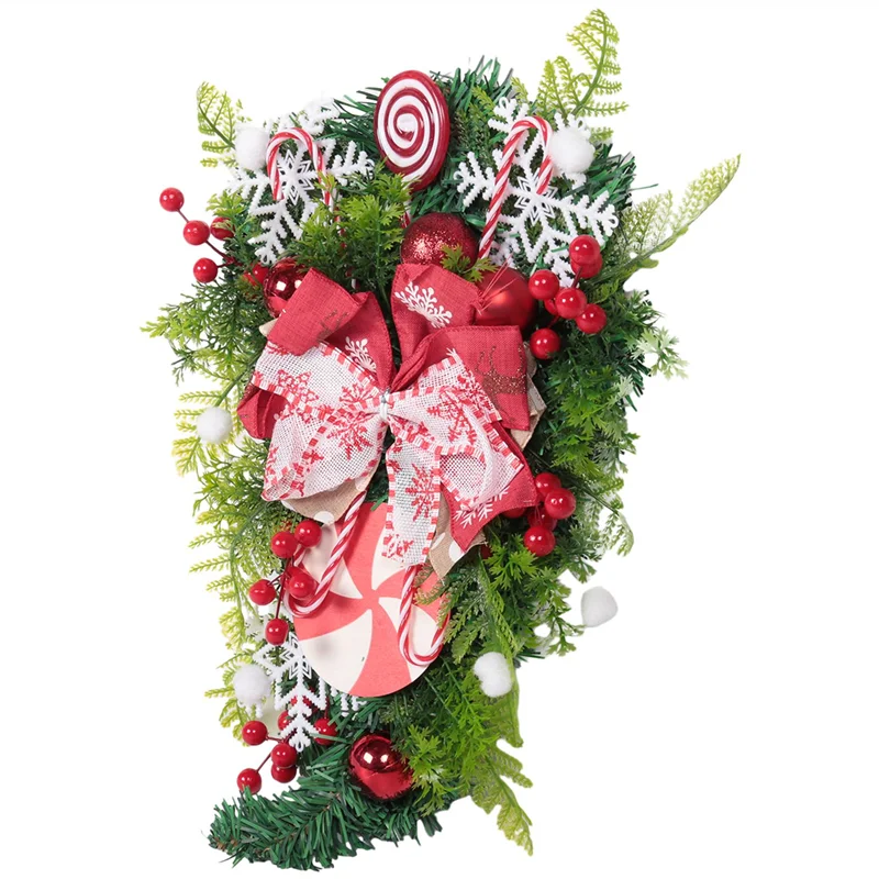 AF90-Christmas Candy Cane Wreath For Front Door Christmas Stairway Decorations Christmas Wreath For Indoor Decor 12X24 Inch
