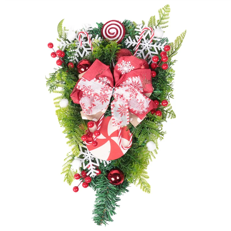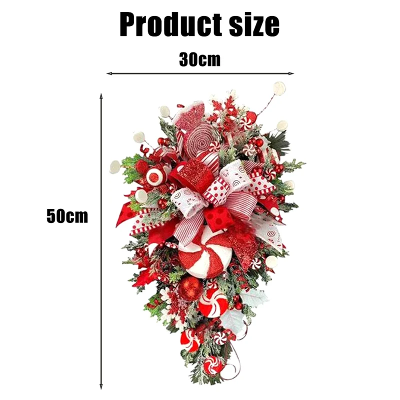 [Handmade Christmas Teardrop Swag] All candy cane christma swag decor are made of pure handwoven weaving! Please note that the candy cane in the Christmas Wreath is made of cardboard! ! ! Measures approximately 12×24 inches, nice christmas front door decor!
