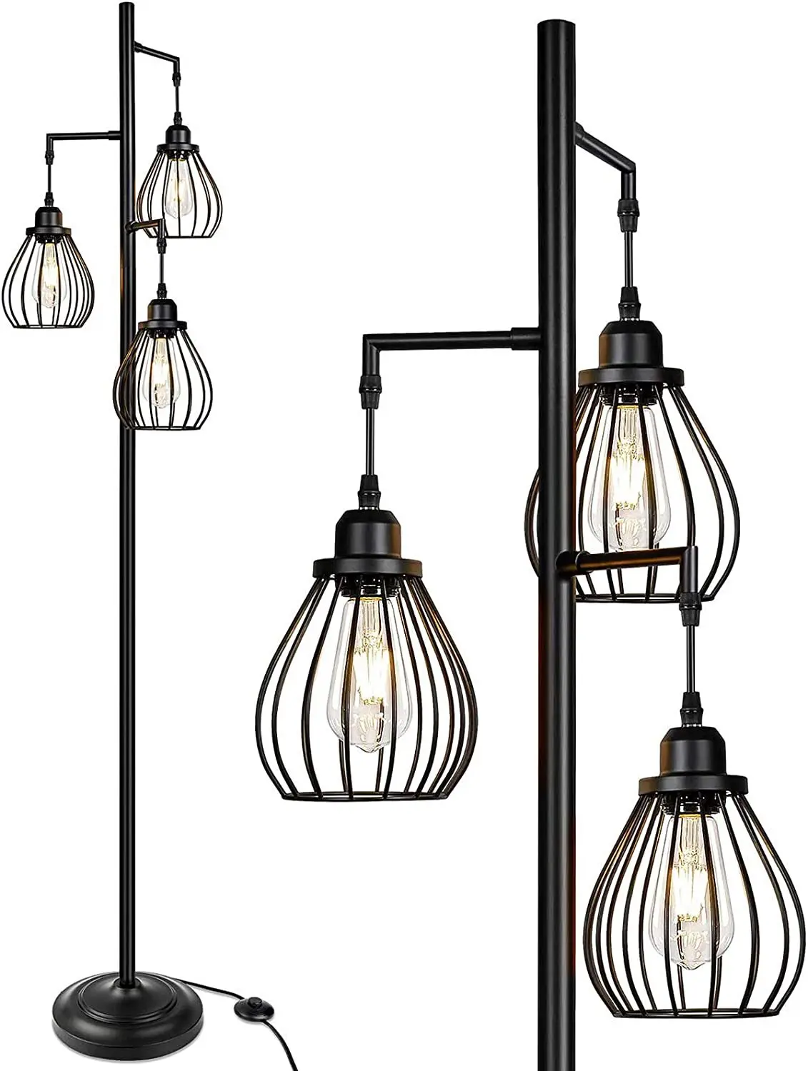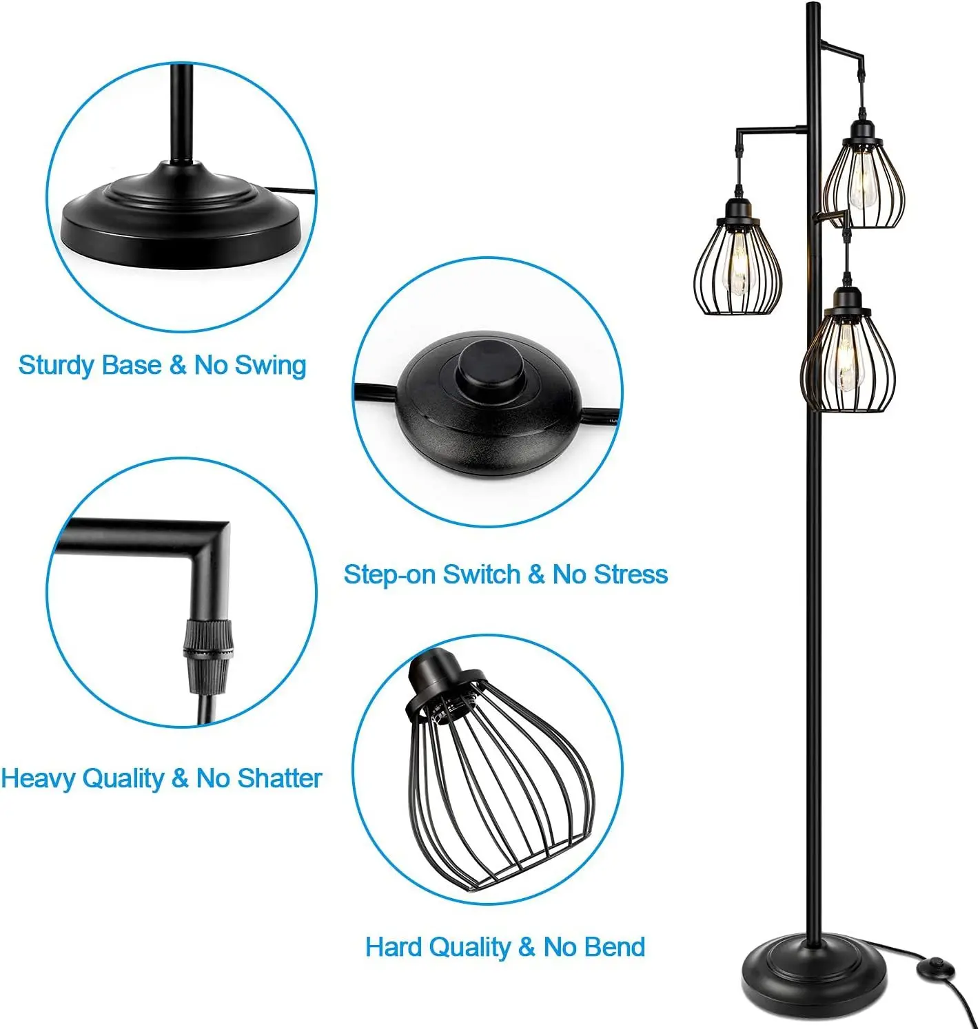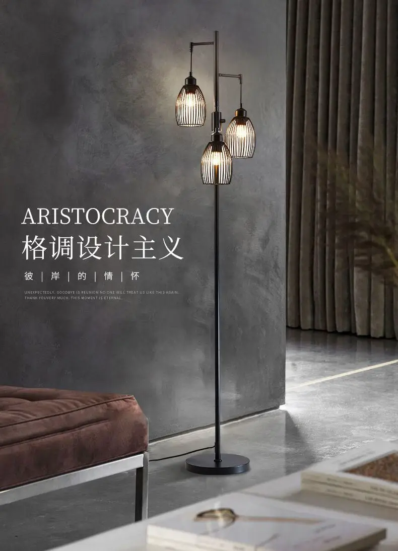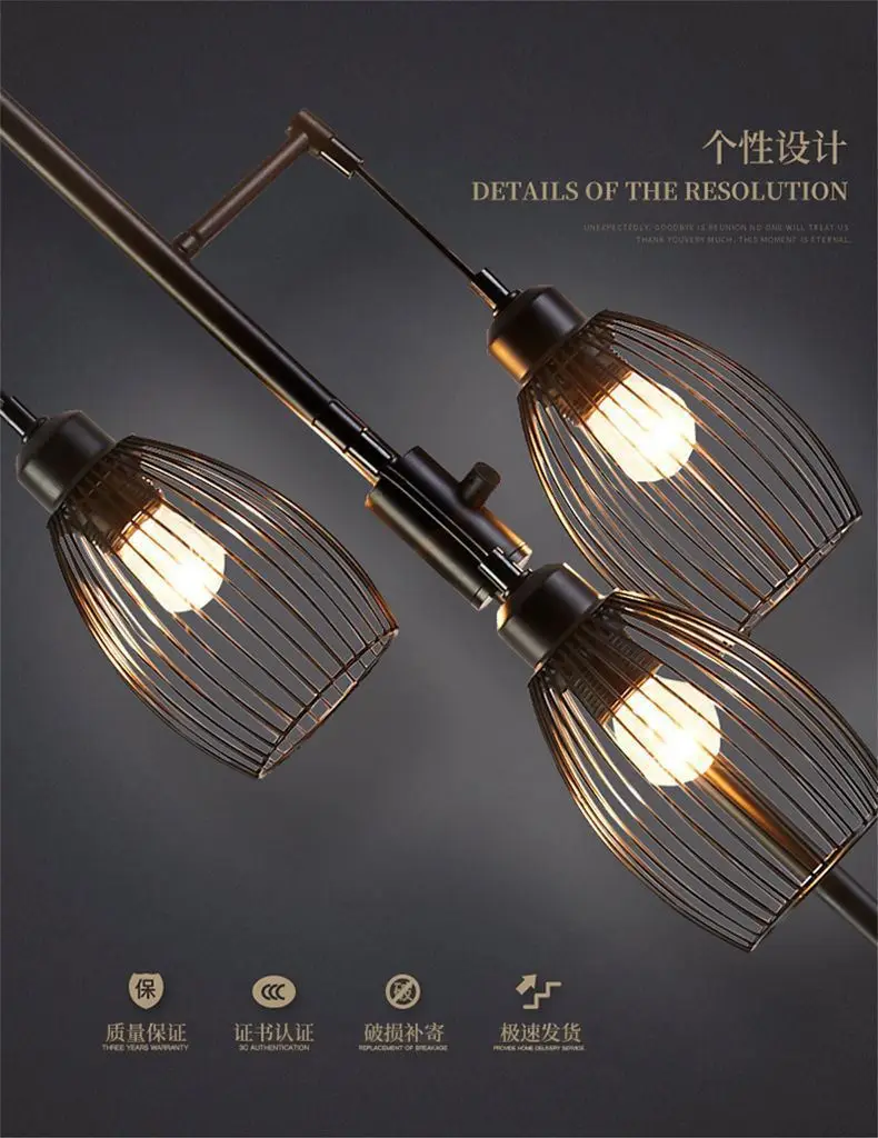 American Retro Birdcage Dimmable 110V-260V LED Reading Light Bedroom Study Living Room Dining Room Home Decoration Floor Lamp
