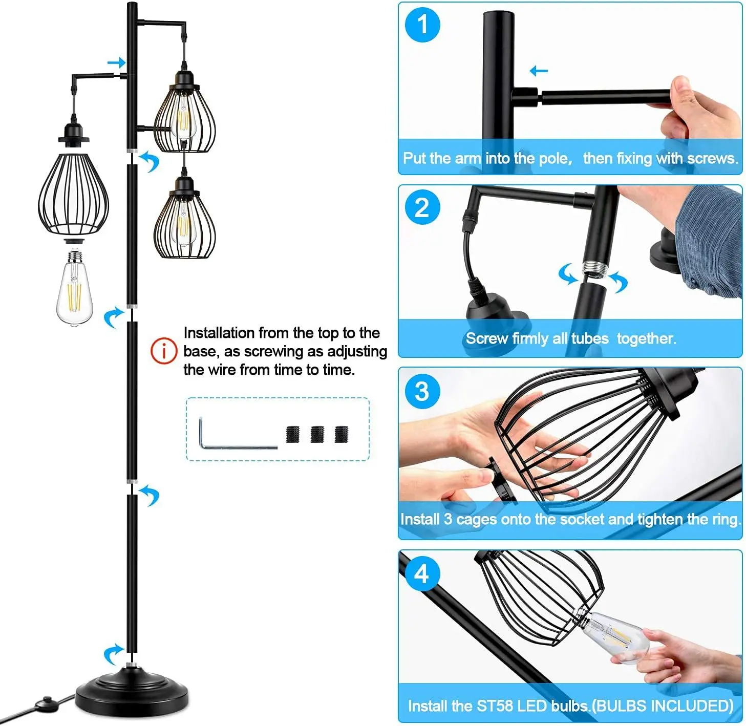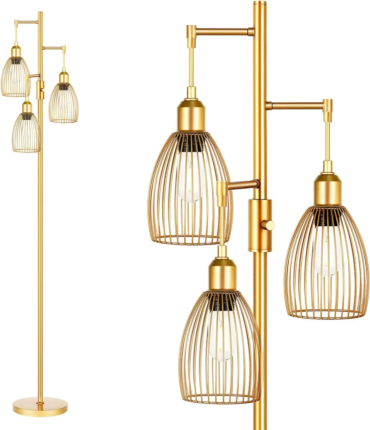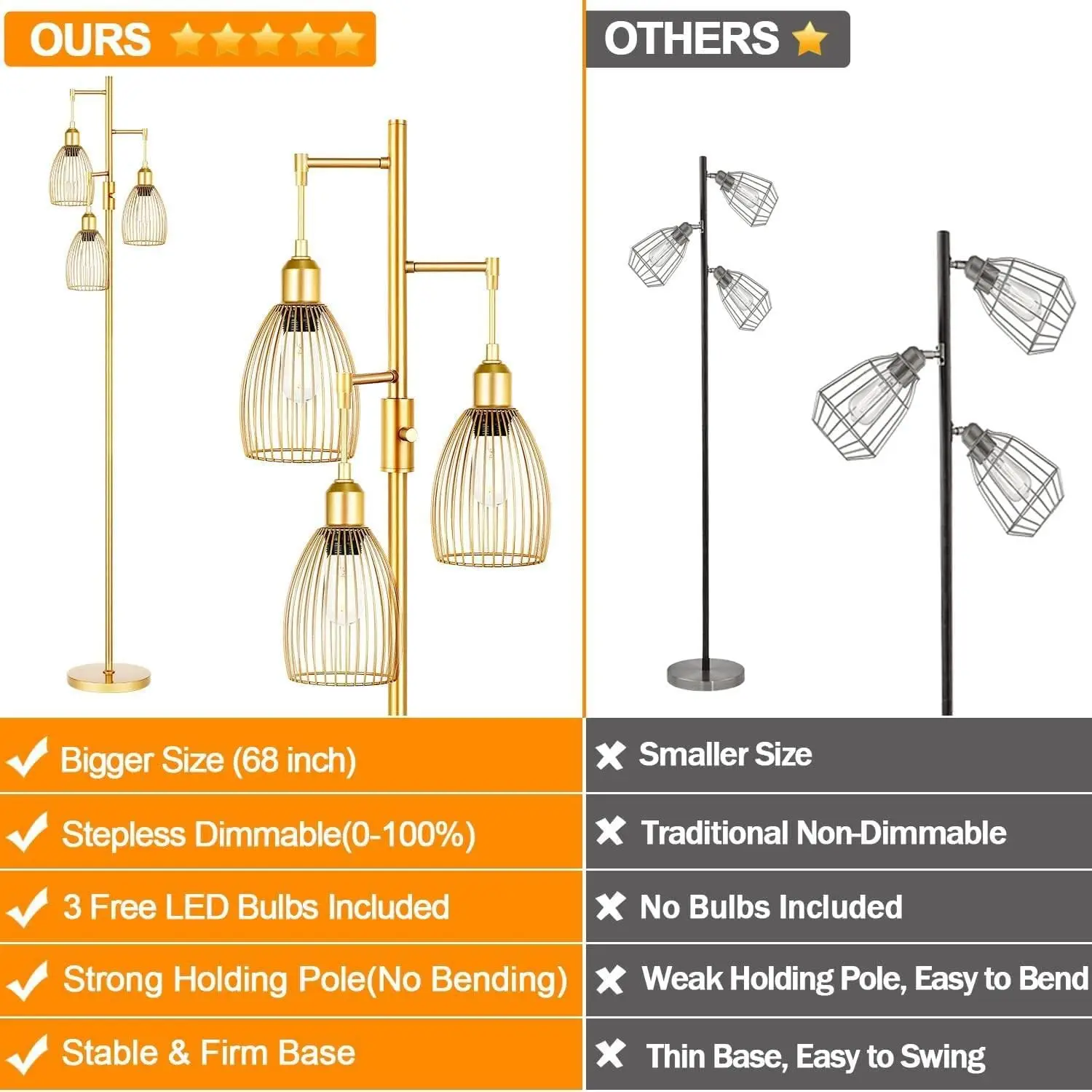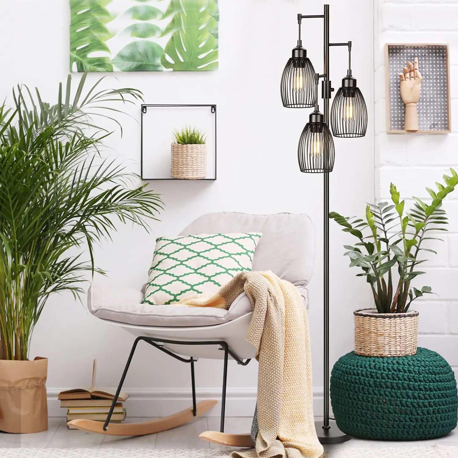 American Retro Birdcage Dimmable 110V-260V LED Reading Light Bedroom Study Living Room Dining Room Home Decoration Floor Lamp