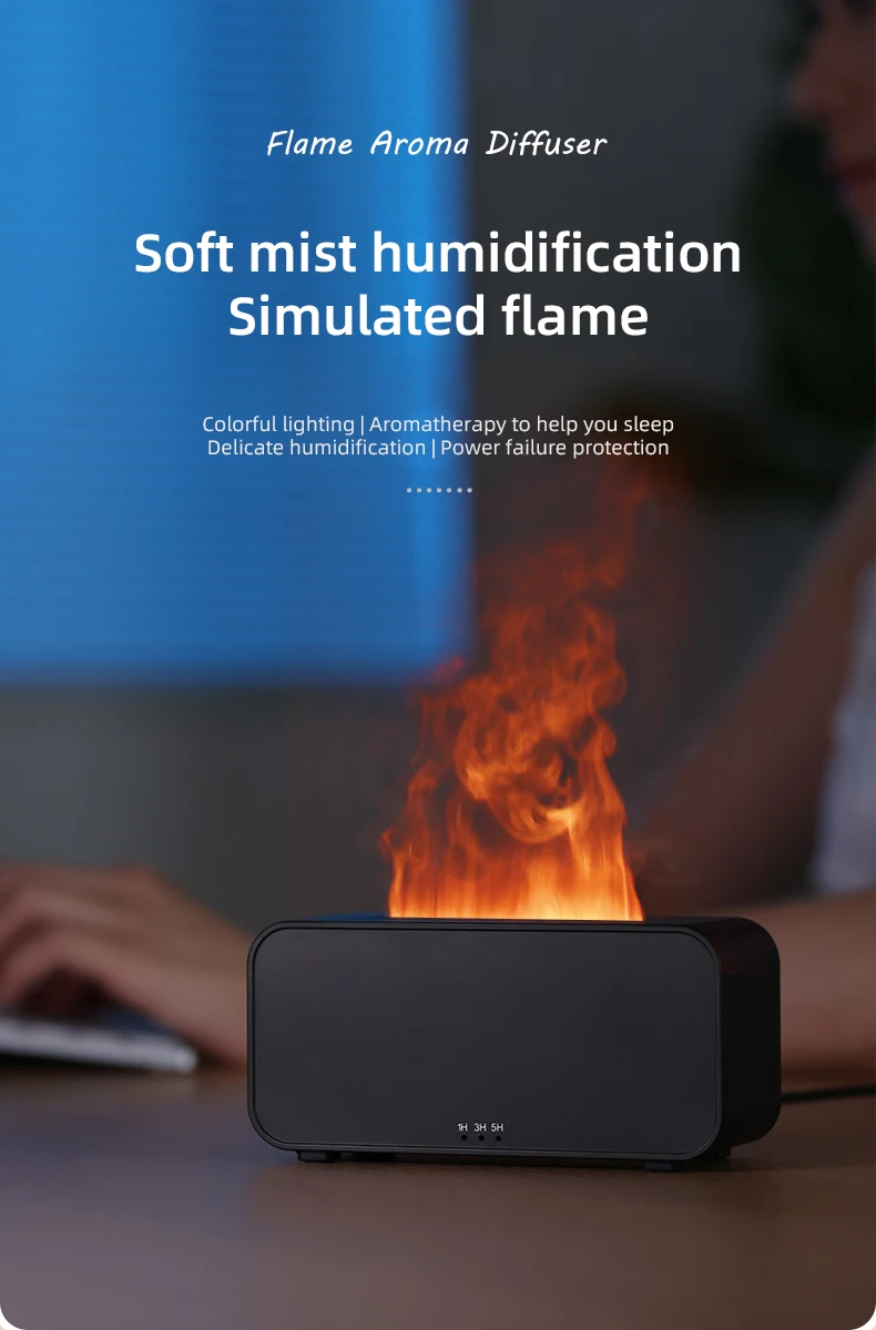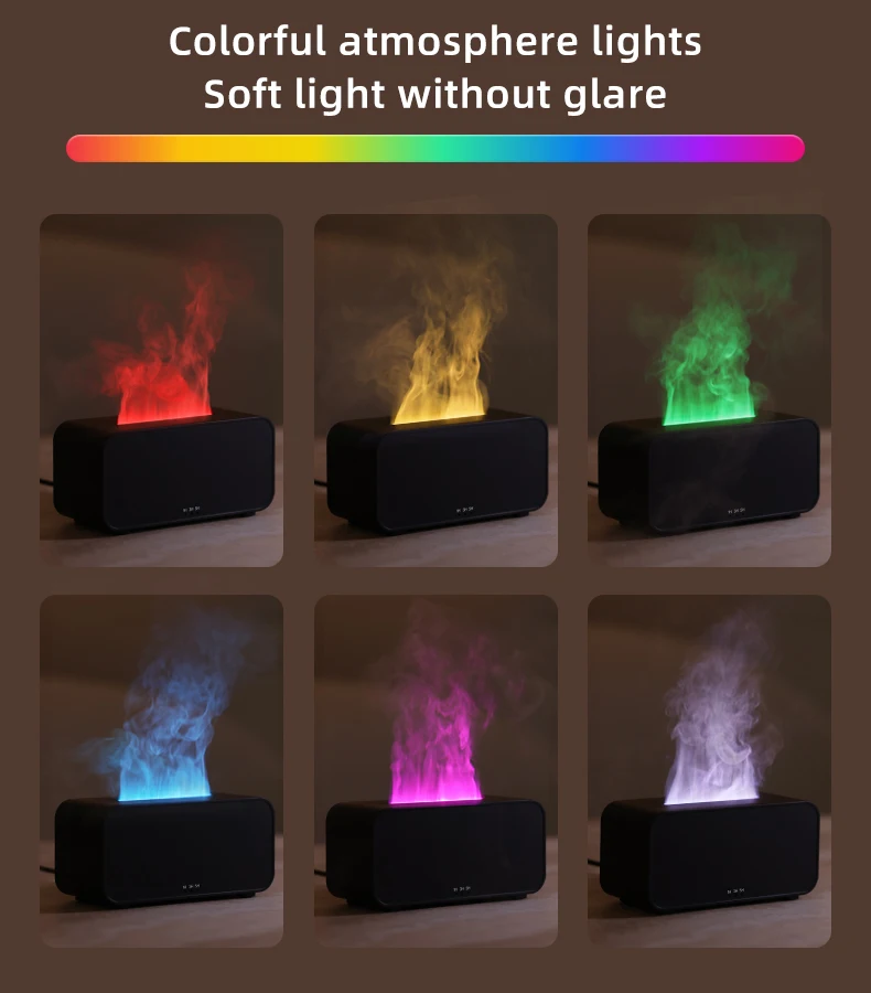 Aroma Diffuser Simulation Colorful Flame Air Humidifier Can add Essential Oil Timing Setting Ultrasonic Cool Mist Maker Fogger