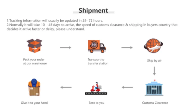 • If you did not receive the product within the guaranteed time( 45 days not including 2-5 day processing) you can request a refund or a reshipment.