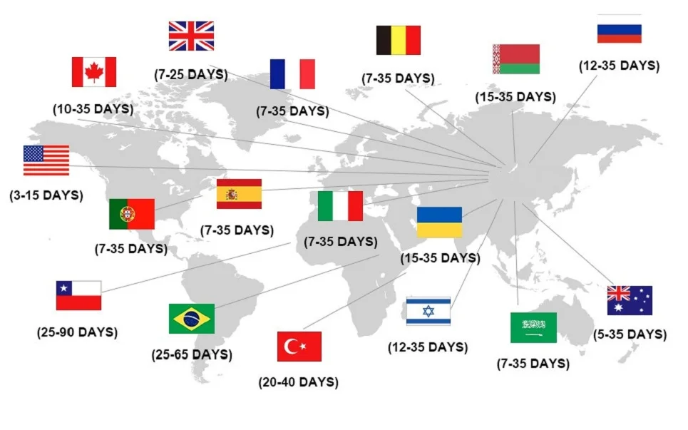 | Africa | 15-45 Business days |