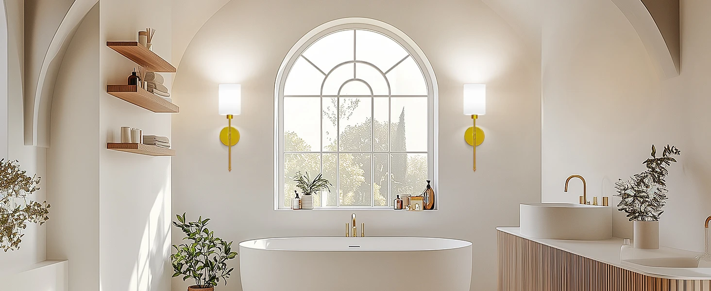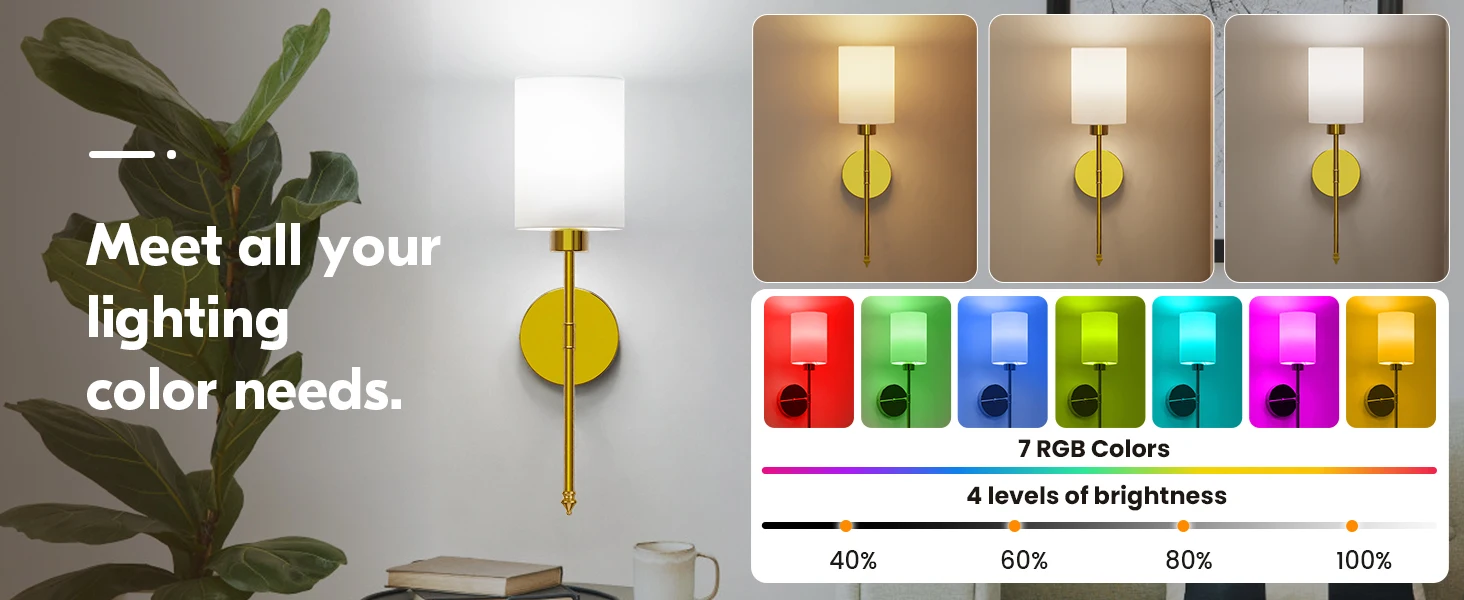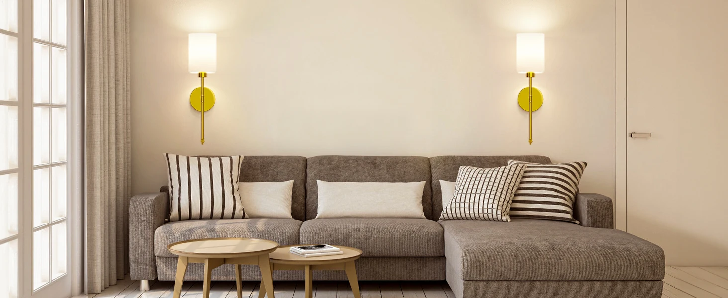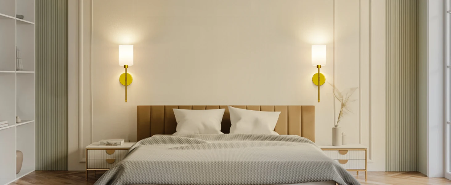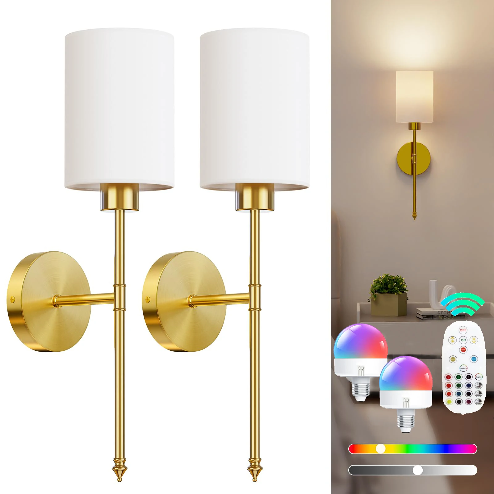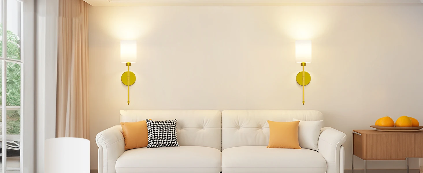 【Unique Design & Wide Application】: Our wireless wall sconce is engineered to fit flawlessly anywhere, blending seamlessly into dressing tables, mirror cabinets, bedrooms, hallways, entryways, living rooms, kitchens, and stairs. Showcasing a unique golden bracket and a pristine white fabric shade, this lamp epitomizes luxury and refinery.