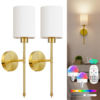 Battery Operated Wall Sconce Set of 2, Gold Wireless Rechargeable Wall Lights with 5200mAh Dimmable Detachable Bulbs and Remote