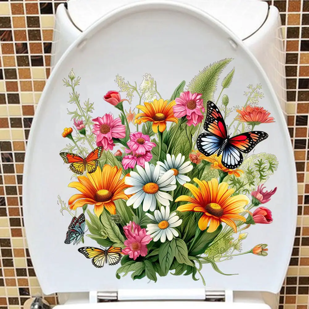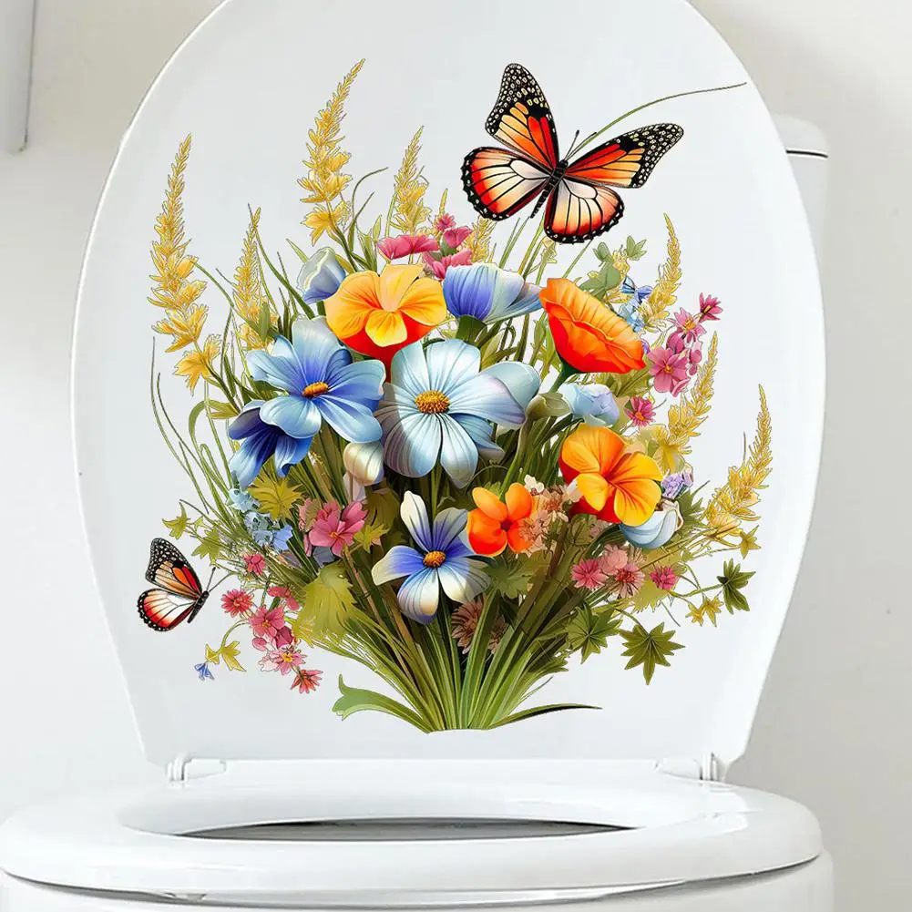 Butterfly Toilet Seat Sticker Self-adhesive Toilet Cover Sticker Diy Detachable Sticker For Bathroom Home Decoration Decoration
