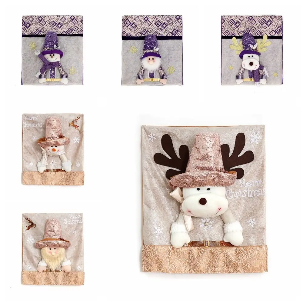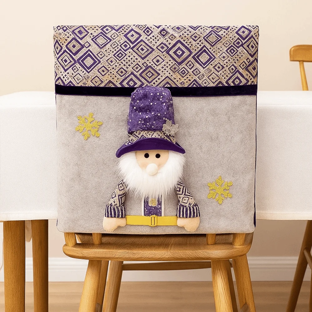 Cartoon Christmas Chair Cover Stretch Removable Xmas Dinner Chair Seat Cover Glitter Purple Seat Protector Home Decoration