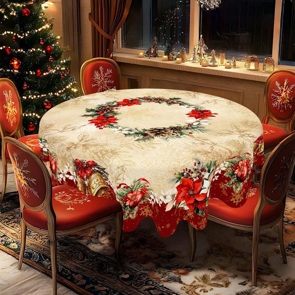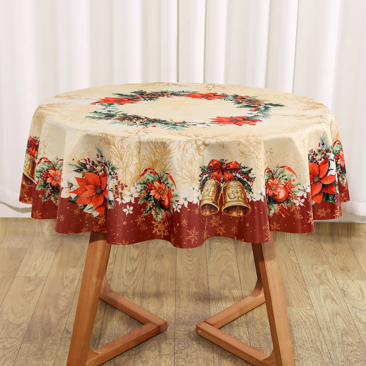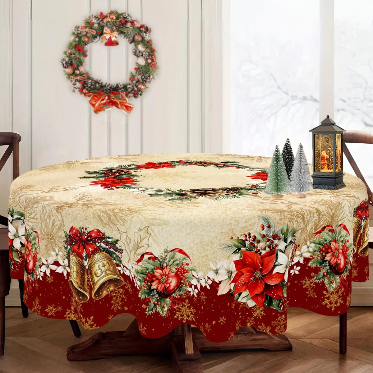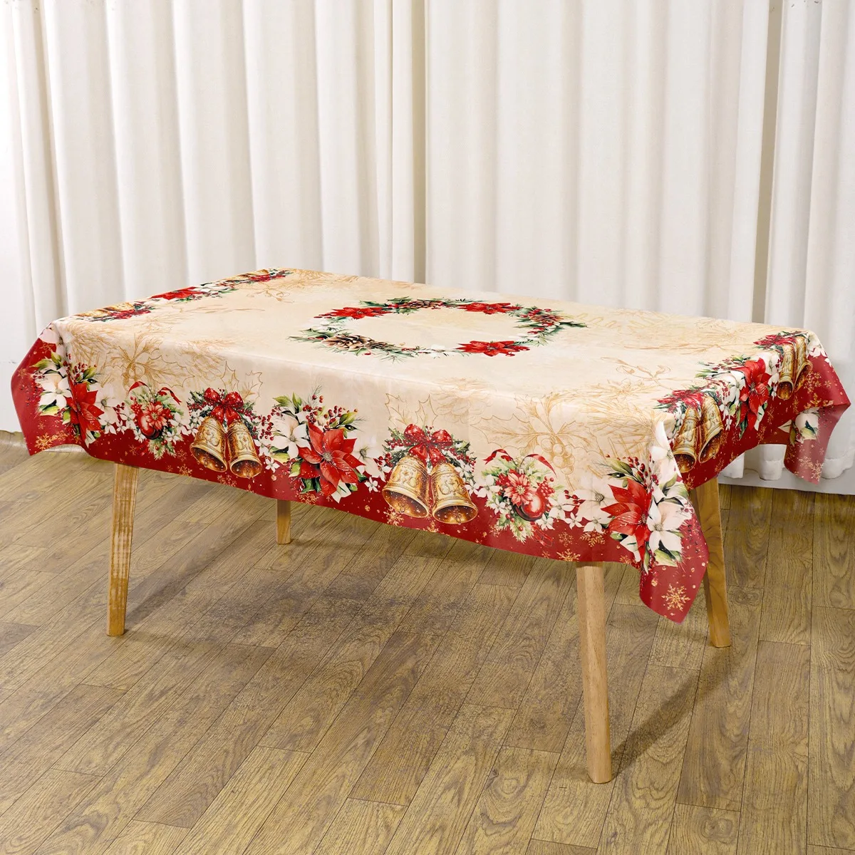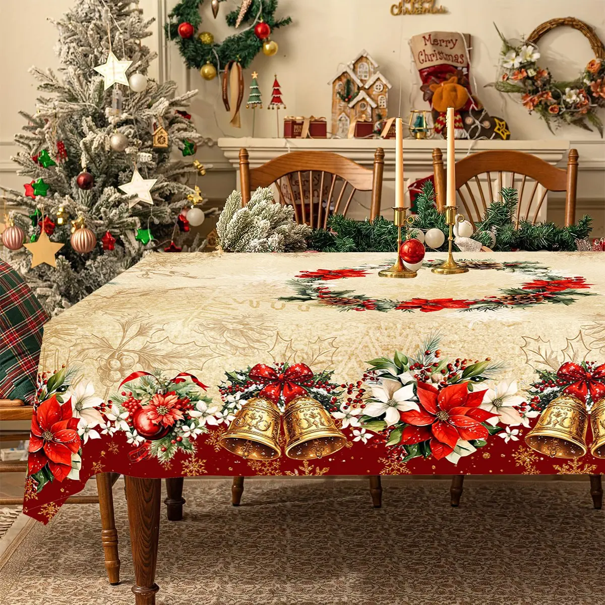 Christmas Bell Poinsettia Tablecloth Dining Table Covers Christmas Decorations for Home 2025 Xmas Gifts Navidad New Year 2026